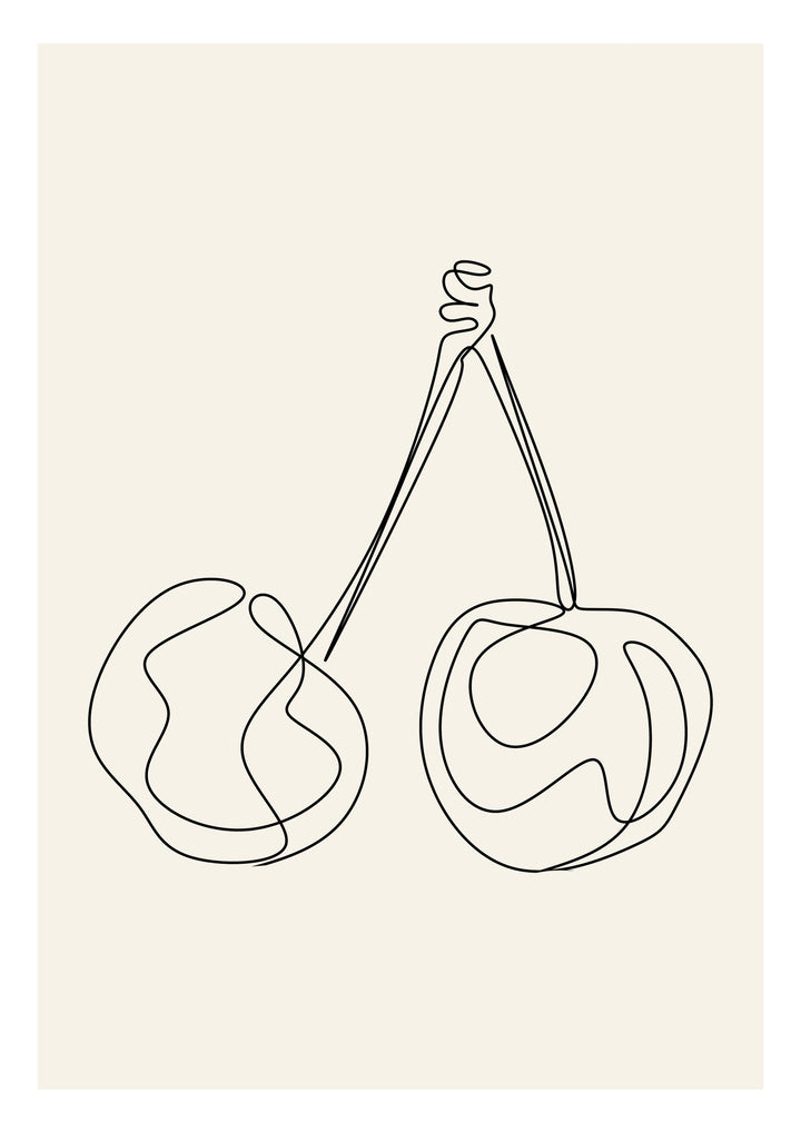 This minimalist line art poster, titled "Juicy Temptation," features a simple yet elegant depiction of cherries, capturing their essence with clean, flowing lines. Its Scandinavian style and monochromatic design make it a versatile addition to any modern or boho-inspired decor. Perfect for those who appreciate subtlety and sophistication in their wall art.