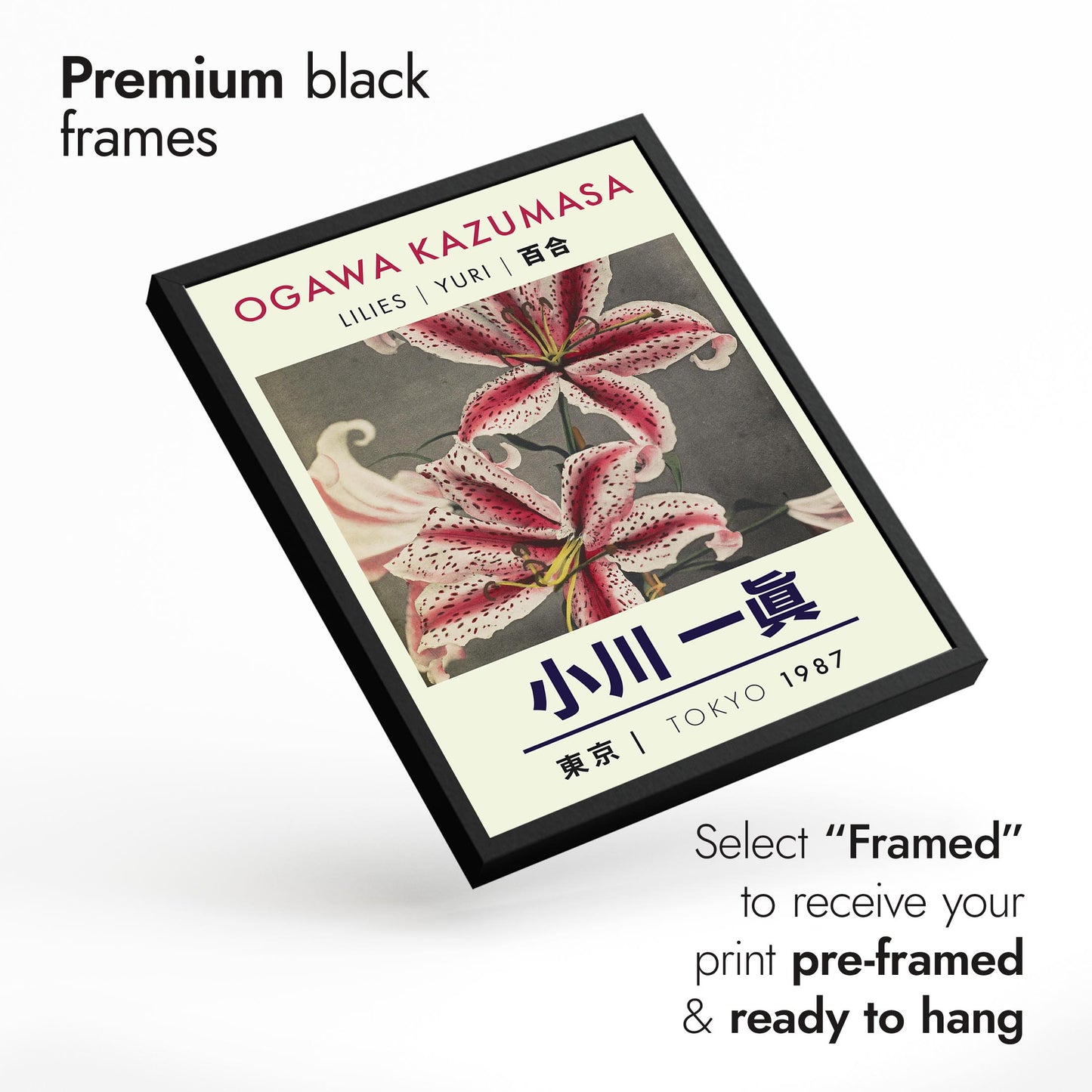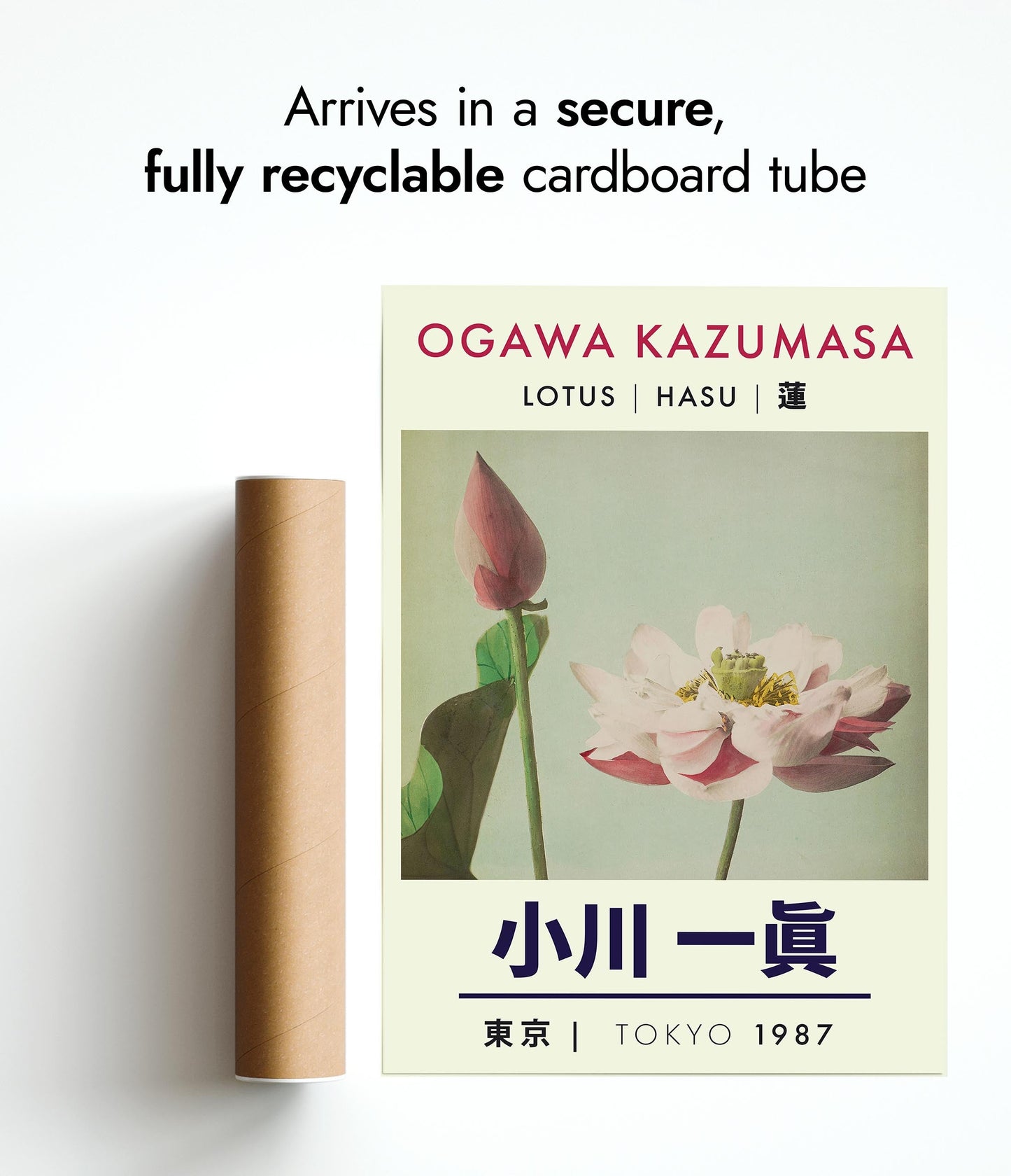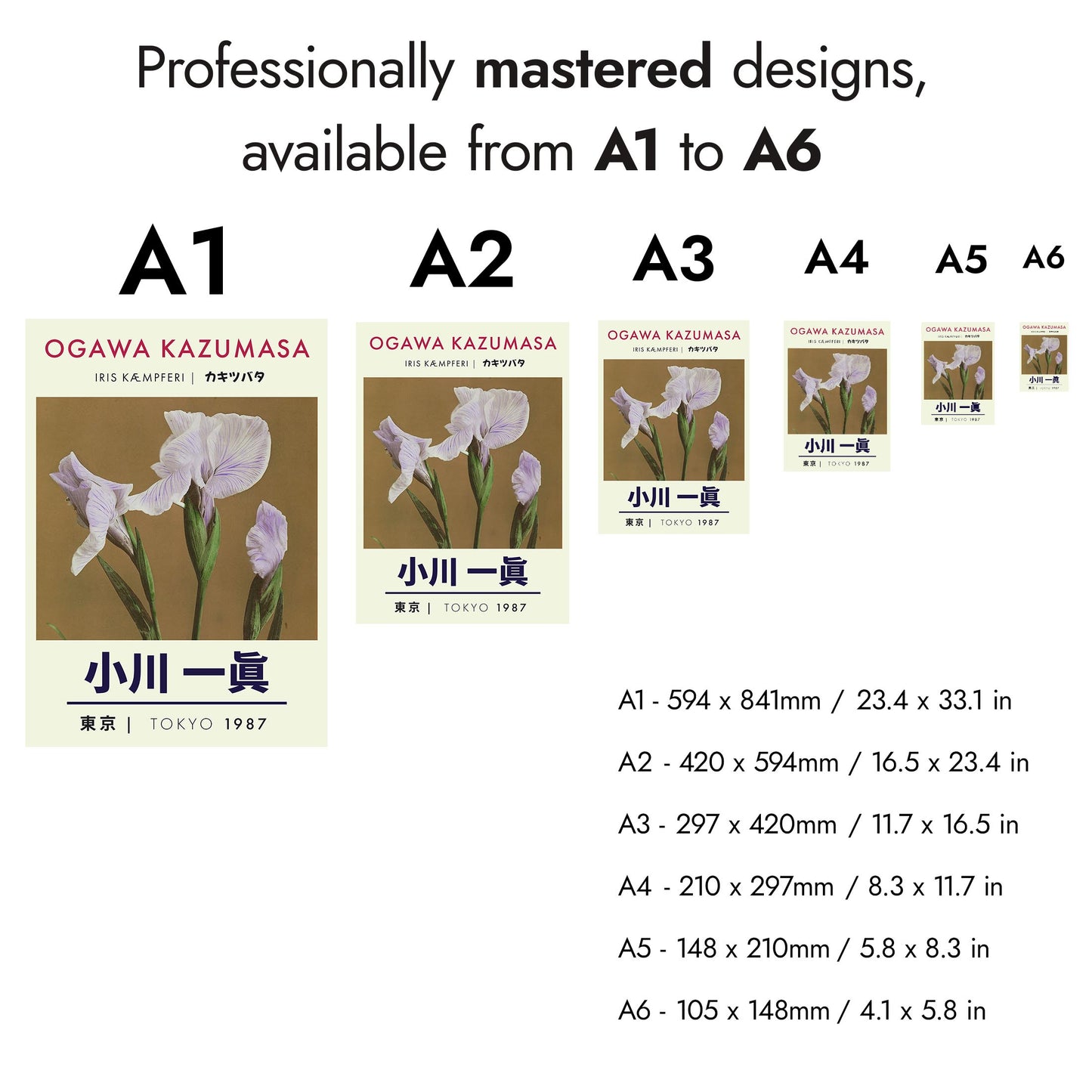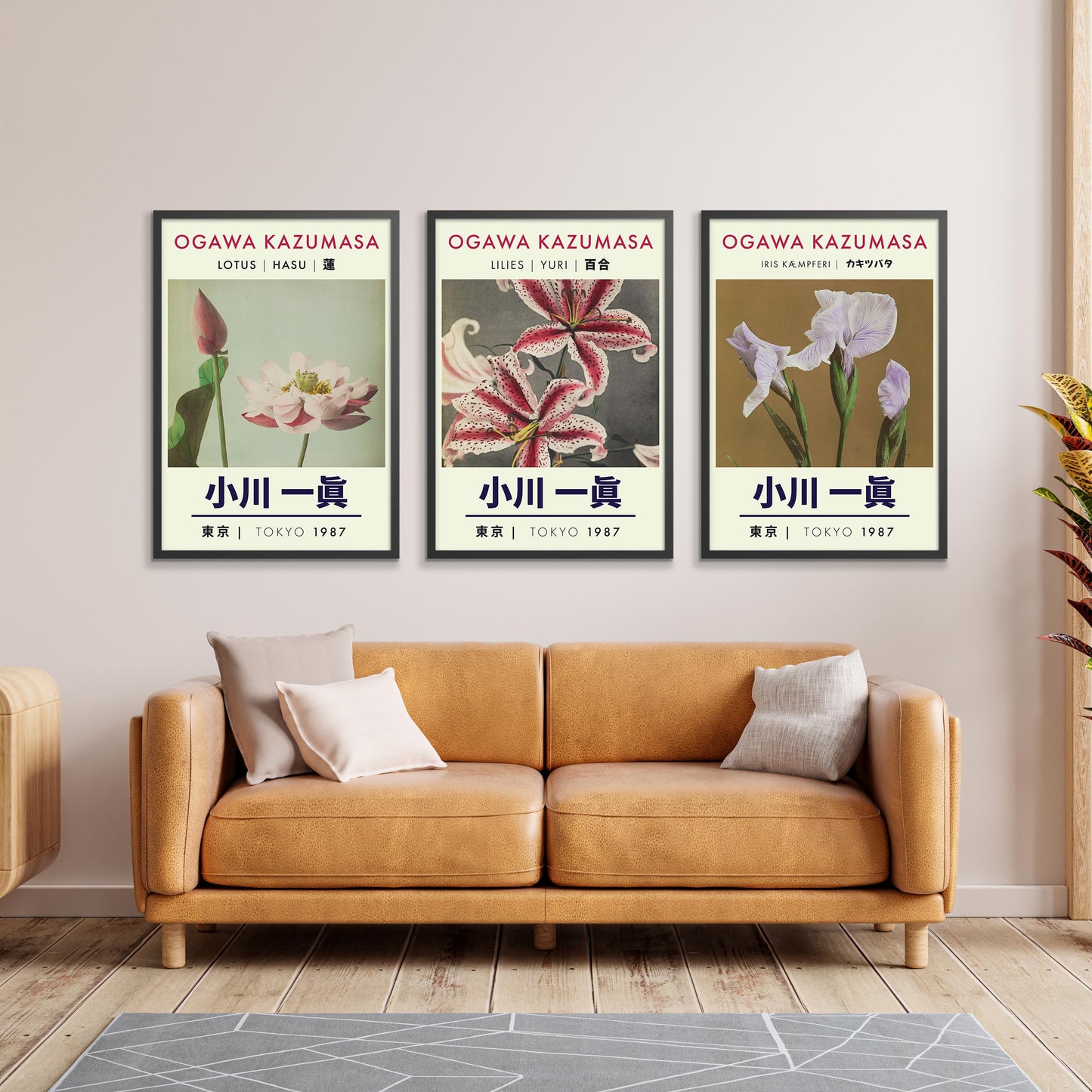 This poster set, featuring Ogawa Kazumasa's captivating floral images, beautifully showcases his intricate photographic still life work from the Japanese exhibition in Tokyo, 1987. The collection includes elegant depictions of lotus, lilies, and iris flowers, capturing their delicate forms and vibrant colors against a muted beige backdrop. Ideal for adding a touch of vintage Japanese art to any space.