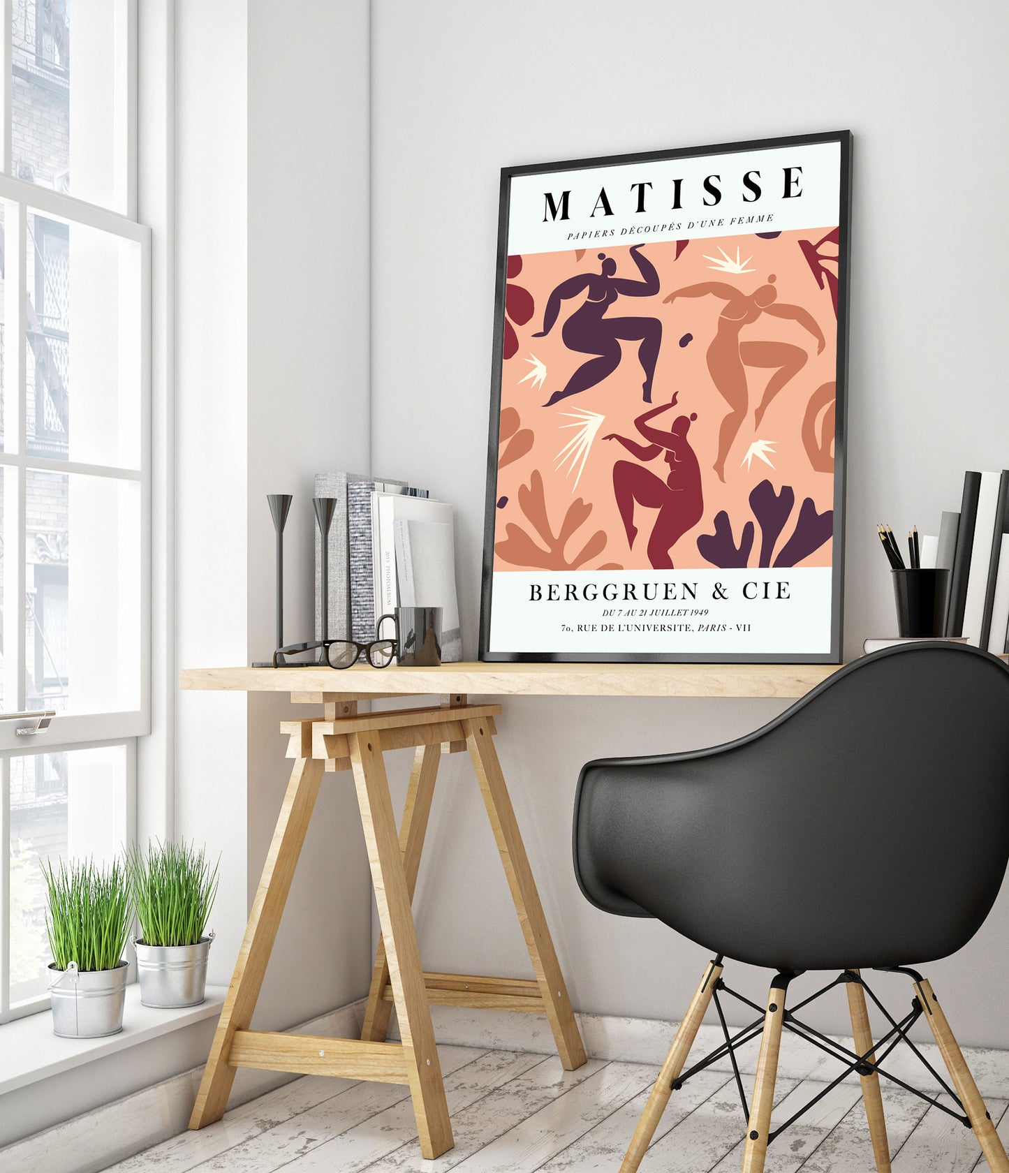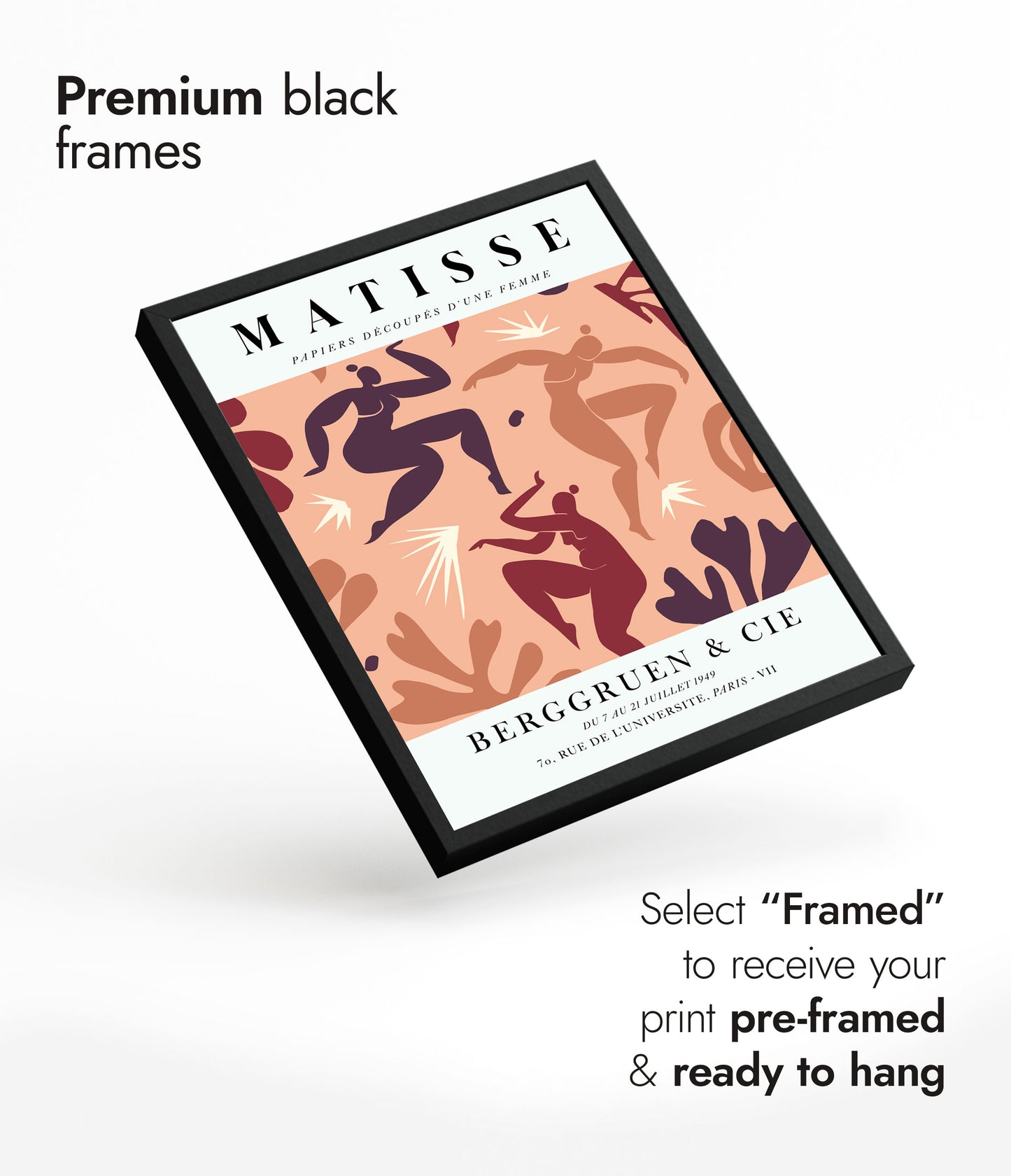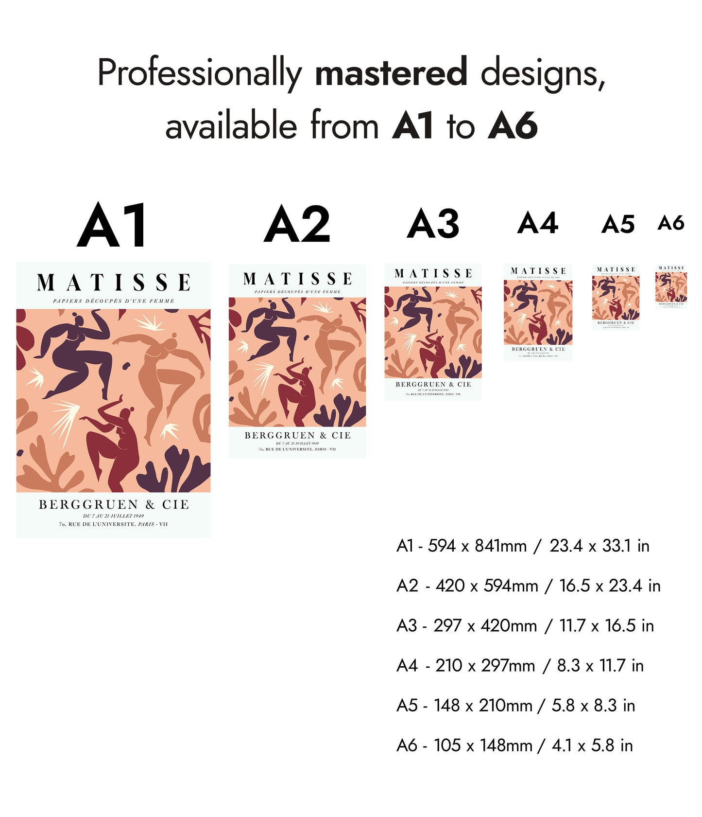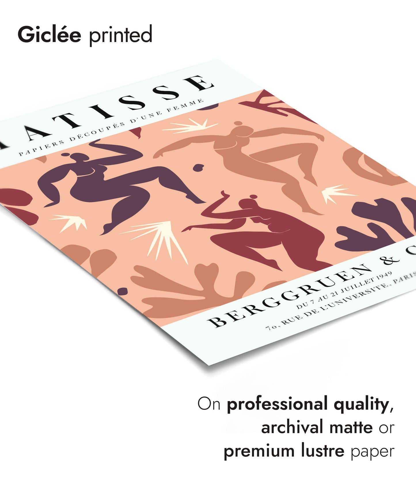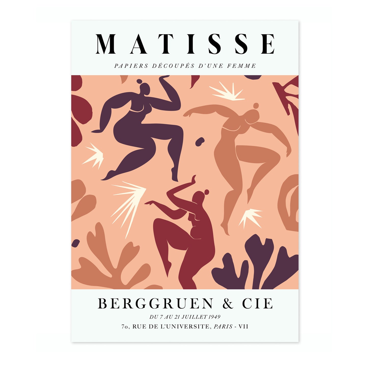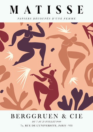 This poster features Henri Matisse's "La Danse" in coral tones, capturing dynamic figures in motion. The vibrant coral and earthy hues enhance the expressive cutout forms of dancing women. The graphic style and bold shapes evoke the essence of movement and energy, reflecting Matisse's mastery in the collage technique. Ideal for art lovers and modern decor enthusiasts.