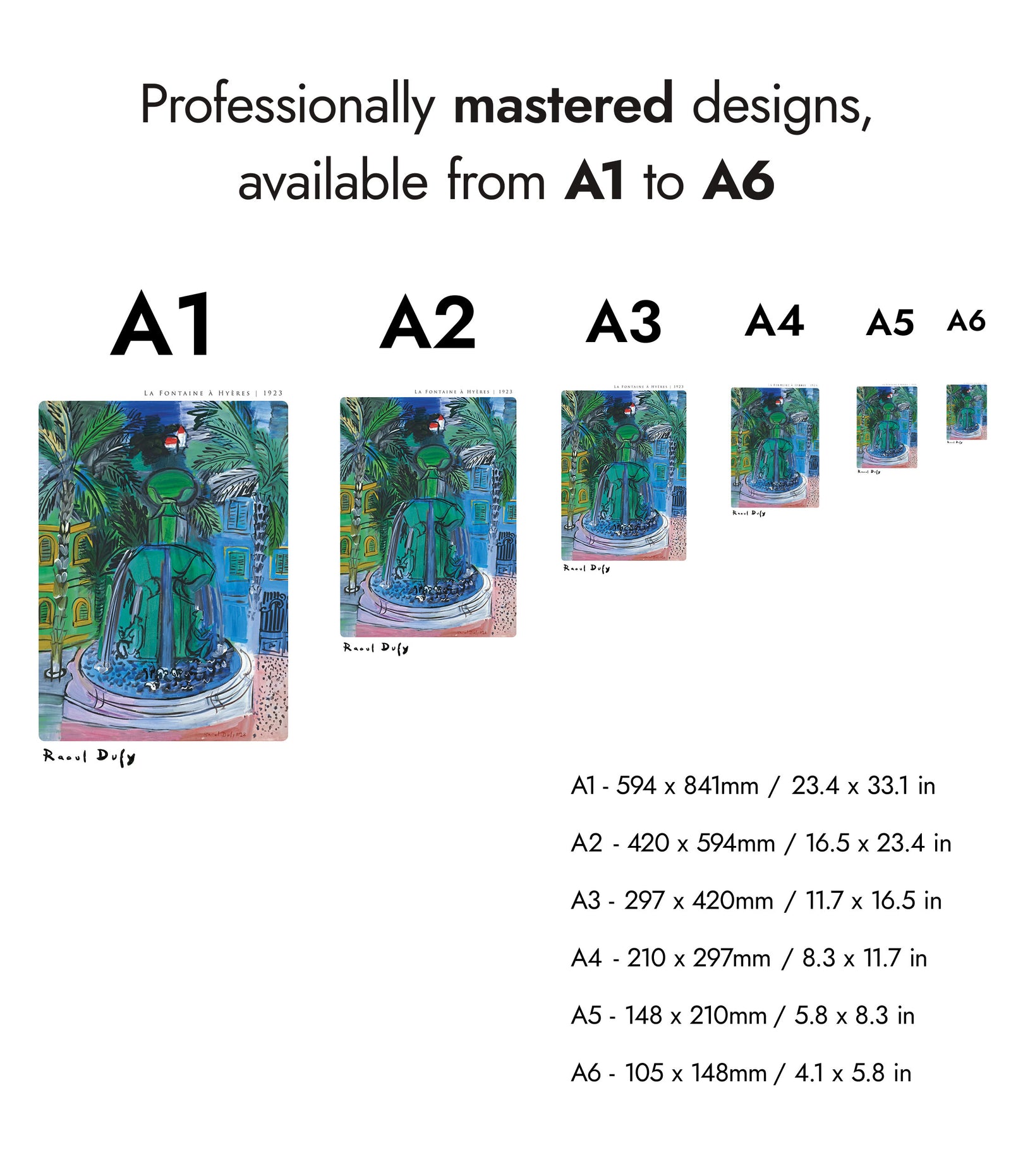 8 colour giclée print process on high-quality 230gsm archival matte paper. All our paper is FSC Certified and prints come with a lifetime fade-resistance guarantee.