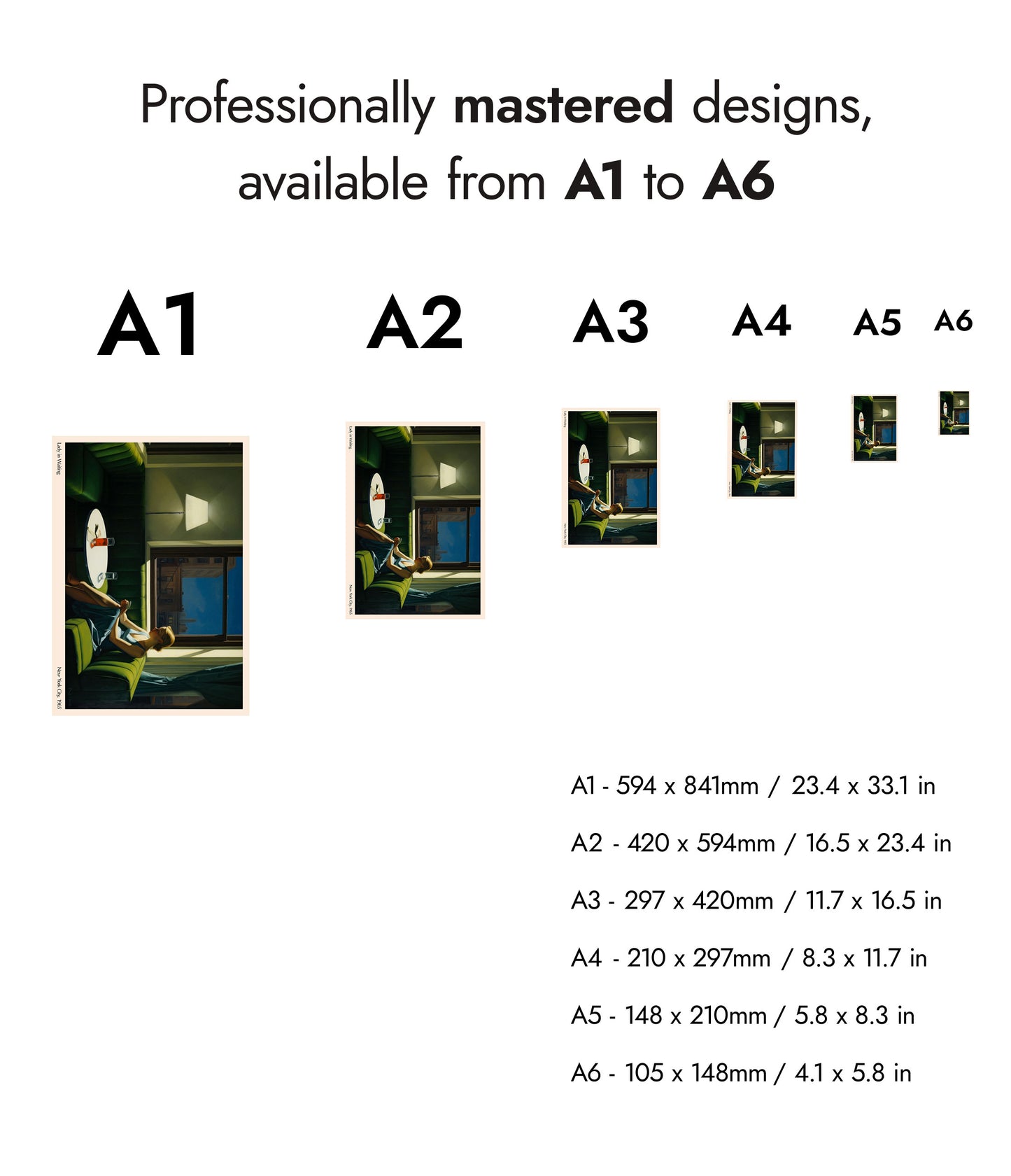 8 colour giclée print process on high-quality 230gsm archival matte paper. All our paper is FSC Certified and prints come with a lifetime fade-resistance guarantee.