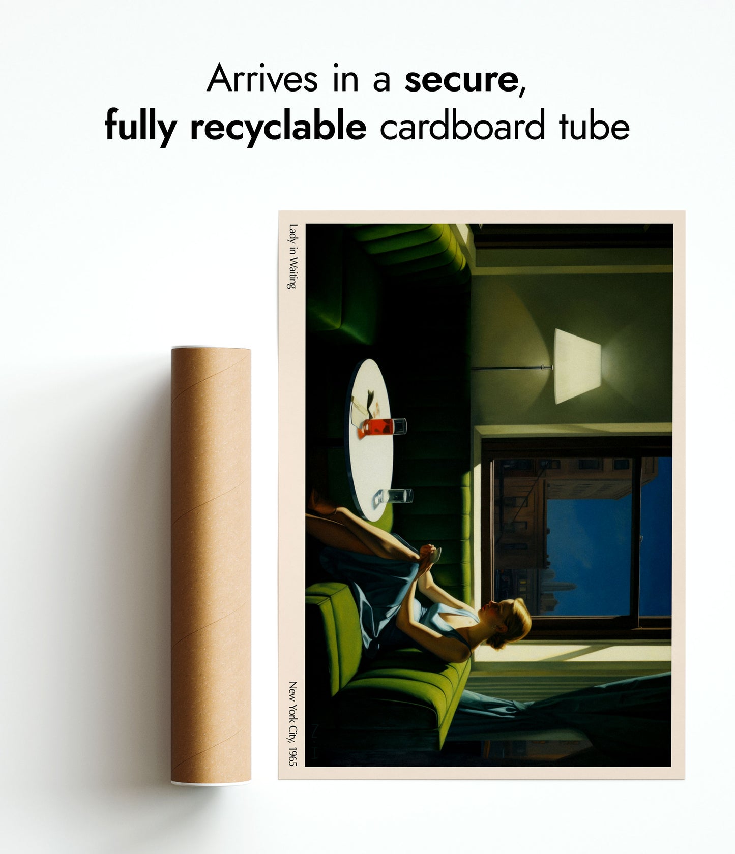 All orders are securely packed in recyclable, eco-friendly solutions. Frames are protected with sustainable bubble wrap alternatives inside thick boxes. Print only orders are shipped in heavy-duty cardboard tubes or protective hard-backed envelopes.