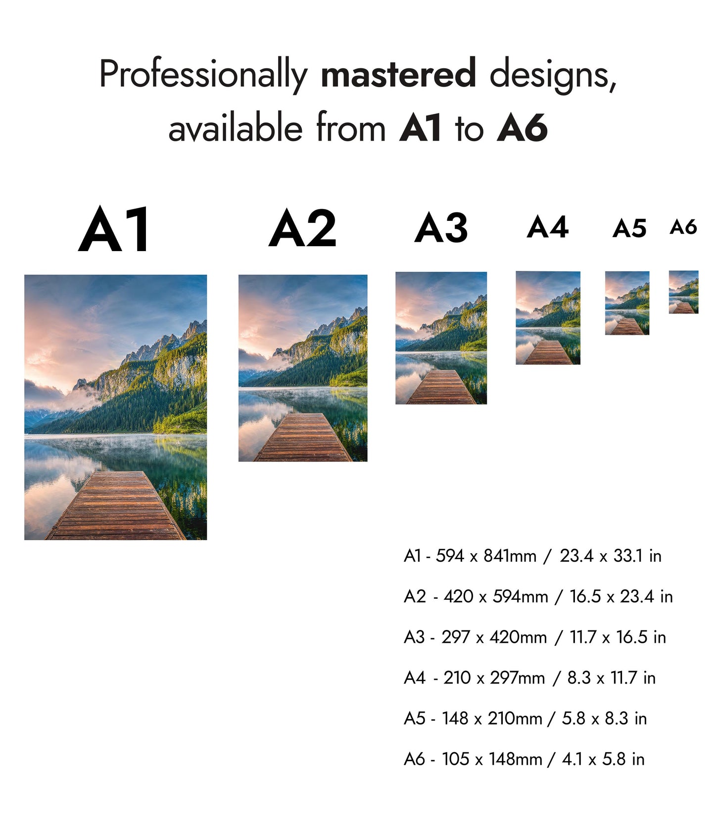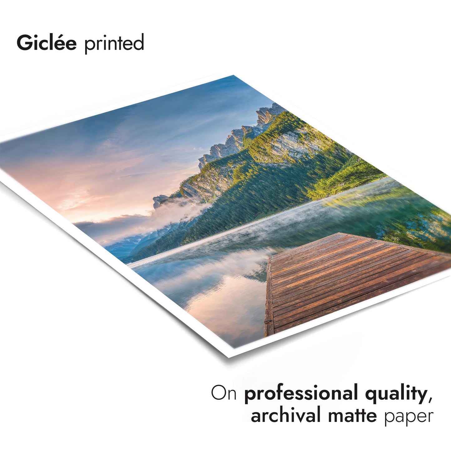 8 colour giclée print process on high-quality 230gsm archival matte paper. All our paper is FSC Certified and prints come with a lifetime fade-resistance guarantee.