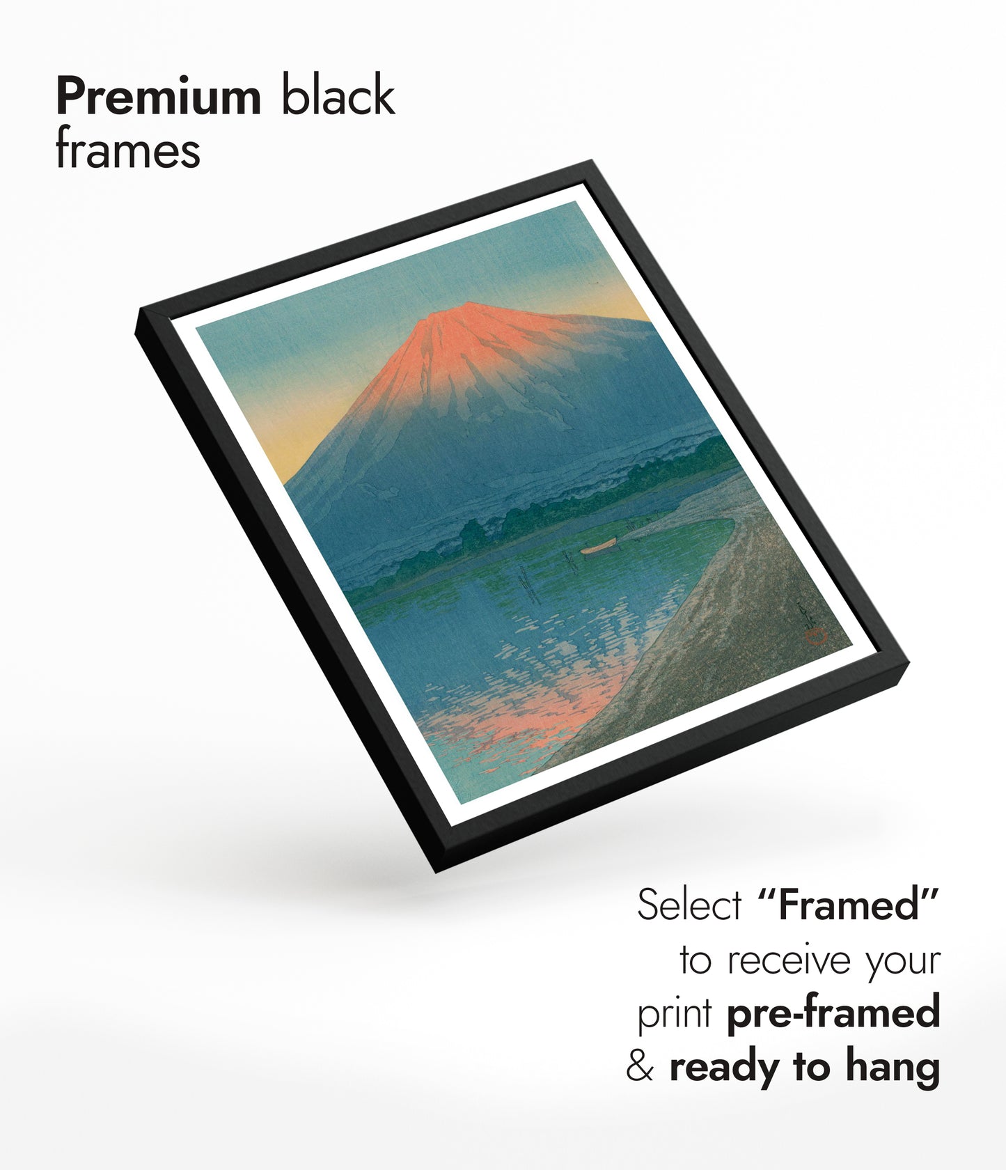 Solid wood frames available in black stained or natural finishes, with UV resistant acrylic glass. Framed orders arrive pre-installed with your choice of print, ready to hang. Available in all print sizes.