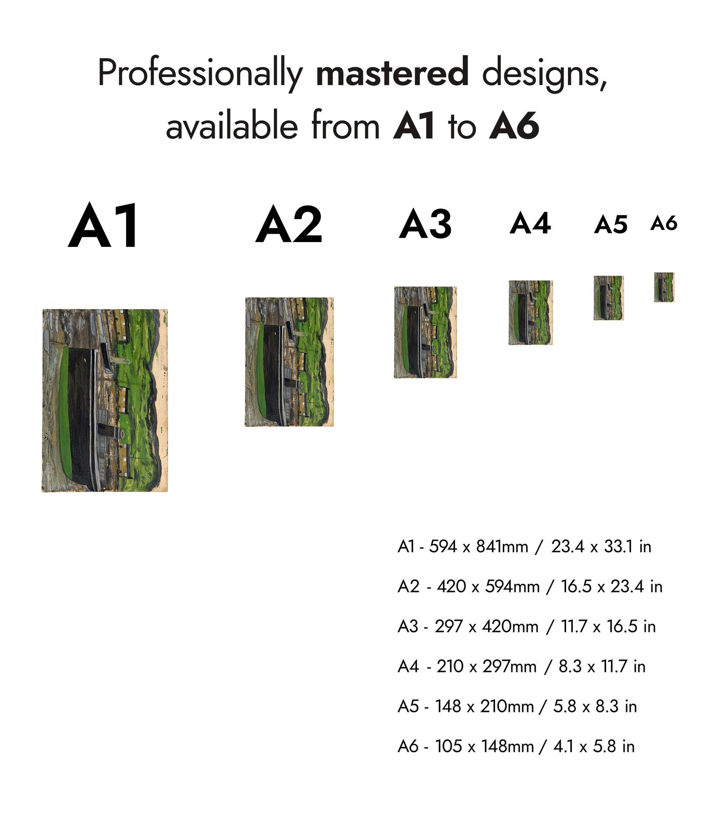 8 colour giclée print process on high-quality 230gsm archival matte paper. All our paper is FSC Certified and prints come with a lifetime fade-resistance guarantee.