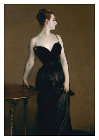 This poster features John Singer Sargent's renowned painting, "Madame X (Madame Pierre Gautreau)." The portrait captures a poised woman in a striking black gown with jeweled straps, standing elegantly against a subdued background. This Impressionist artwork emphasizes the subject's refined grace and enigmatic presence. Perfect for adding a touch of classic elegance and sophistication to any space.