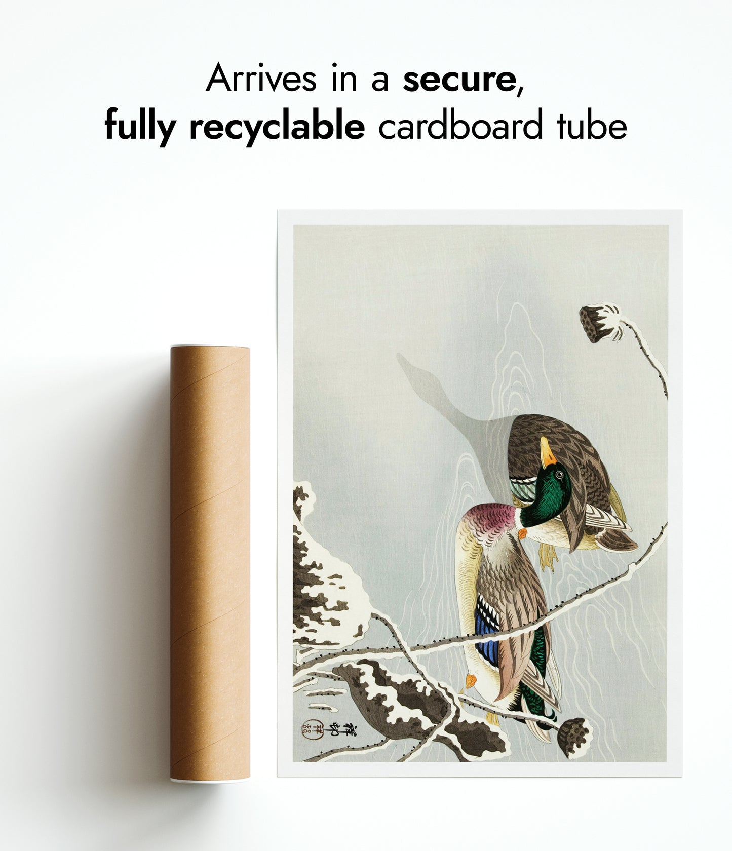 All orders are securely packed in recyclable, eco-friendly solutions. Frames are protected with sustainable bubble wrap alternatives inside thick boxes. Print only orders are shipped in heavy-duty cardboard tubes or protective hard-backed envelopes.