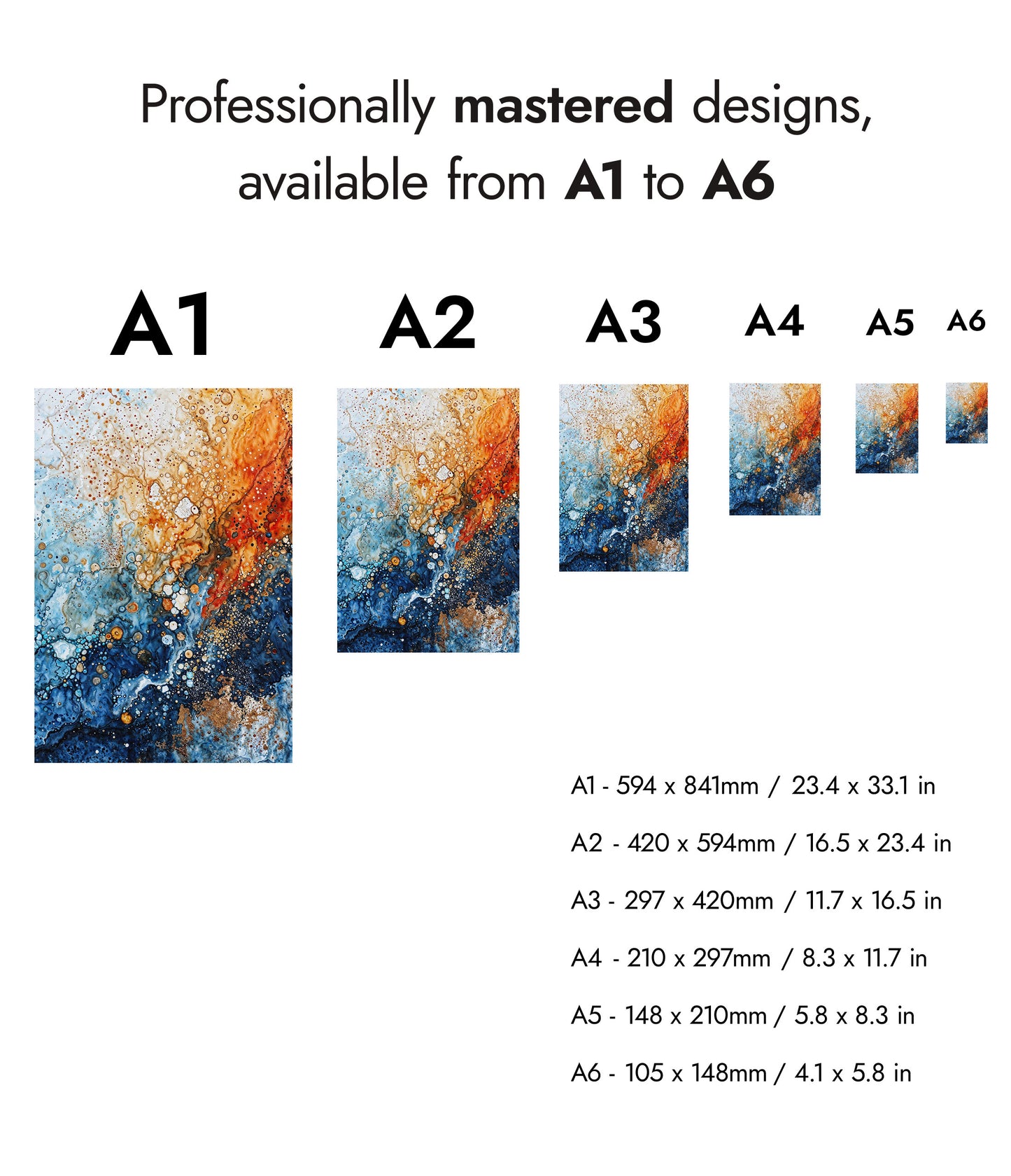 8 colour giclée print process on high-quality 230gsm archival matte paper. All our paper is FSC Certified and prints come with a lifetime fade-resistance guarantee.