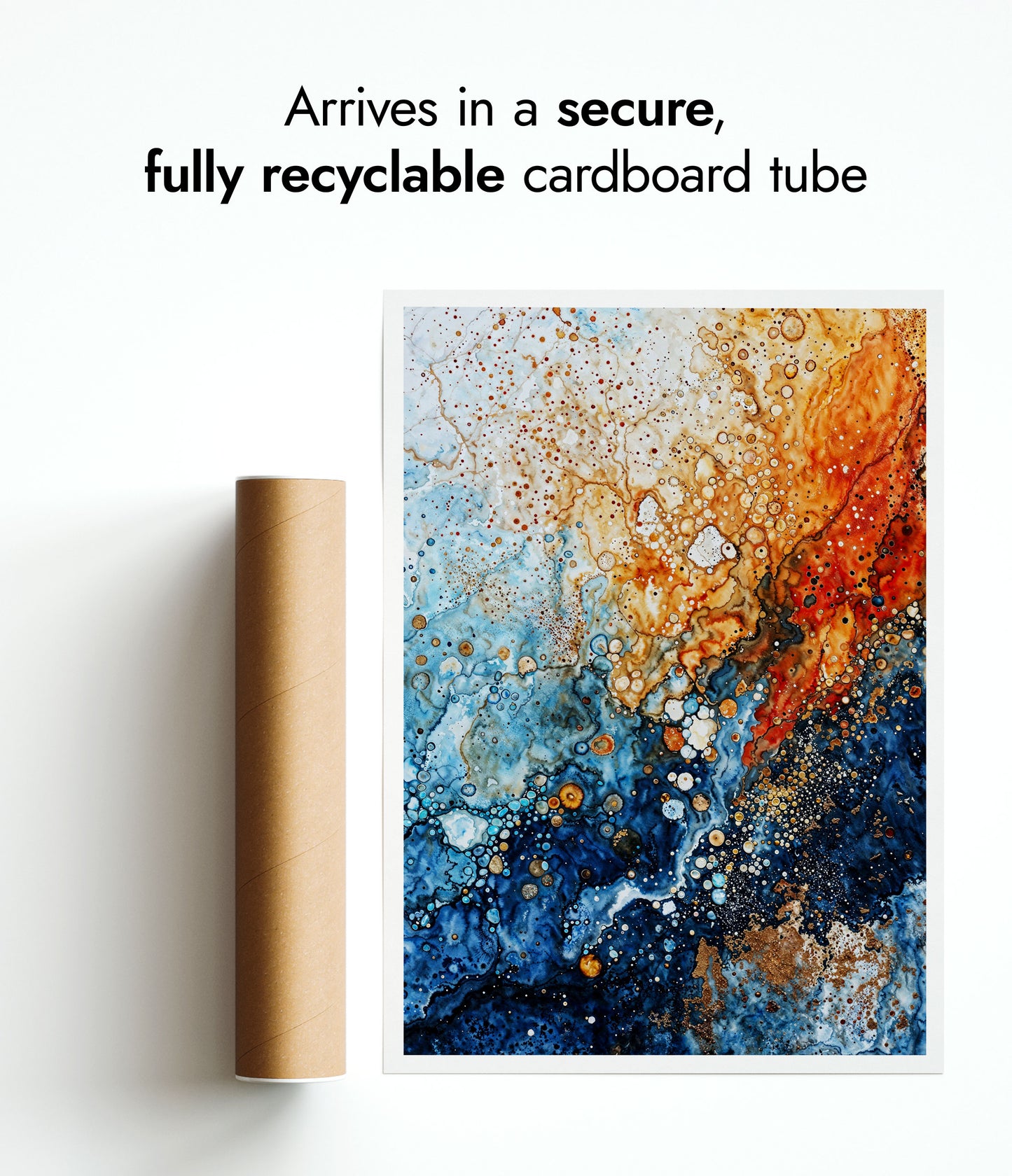All orders are securely packed in recyclable, eco-friendly solutions. Frames are protected with sustainable bubble wrap alternatives inside thick boxes. Print only orders are shipped in heavy-duty cardboard tubes or protective hard-backed envelopes.