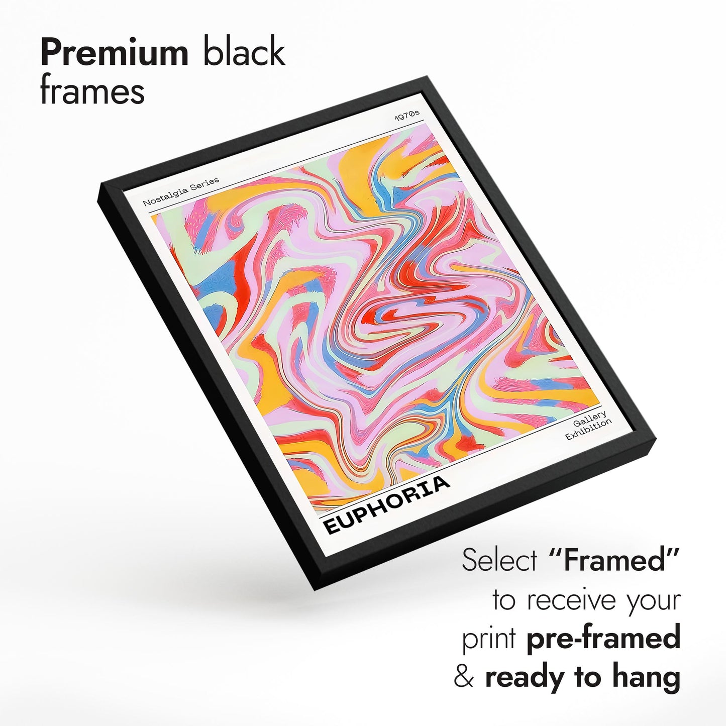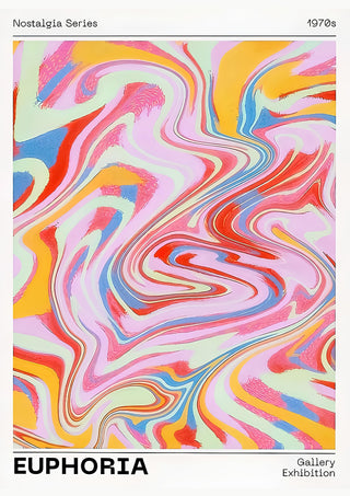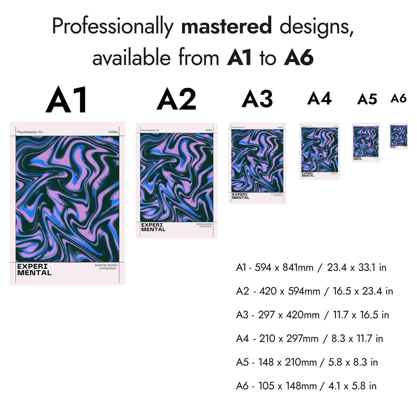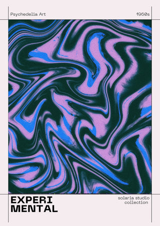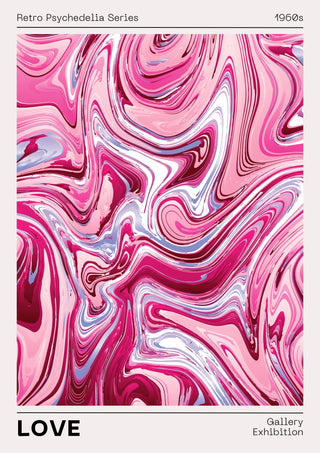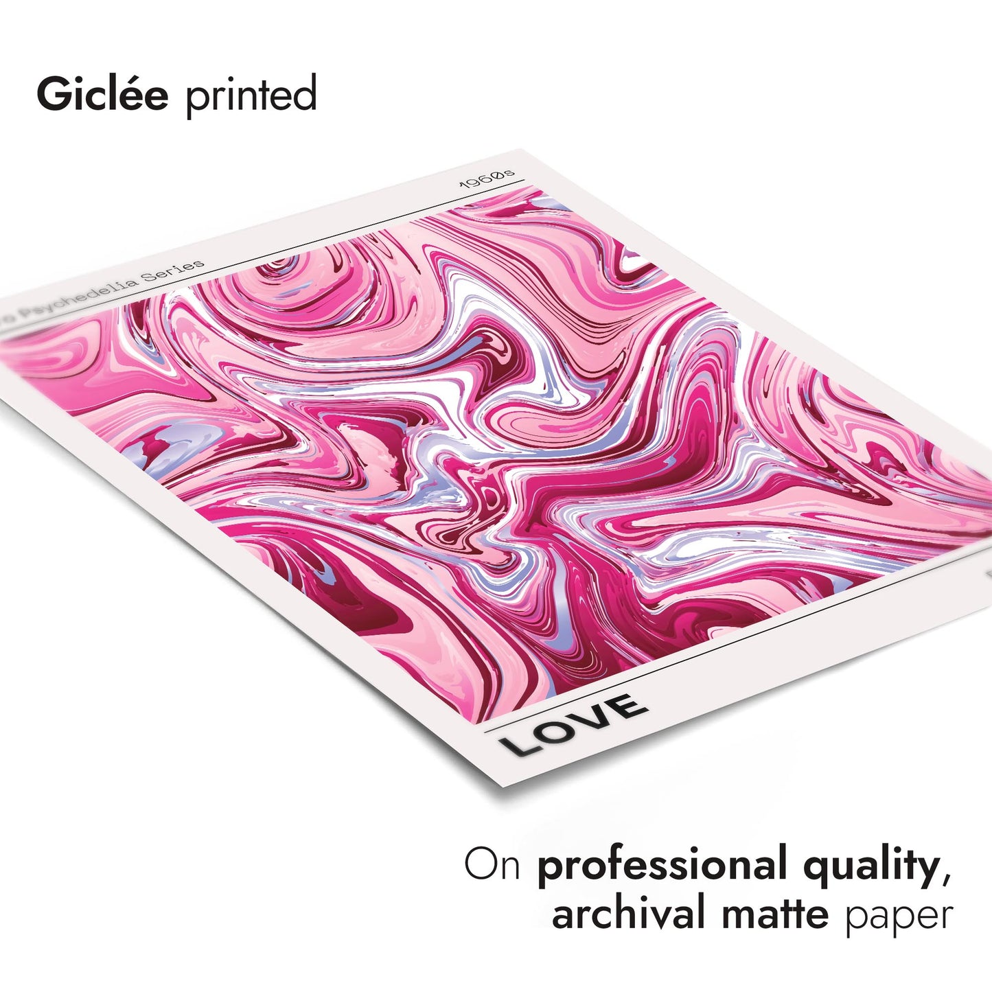 The "Marbled Affirmations" poster set features vibrant abstract designs with psychedelic swirls in pink, purple, and teal. Each piece is a modern, graphic representation evoking dynamic emotions. Perfect for adding a burst of color and movement to any space, these abstract posters highlight themes of shapes and vibrant vibes, ideal for those seeking an expressive art display.