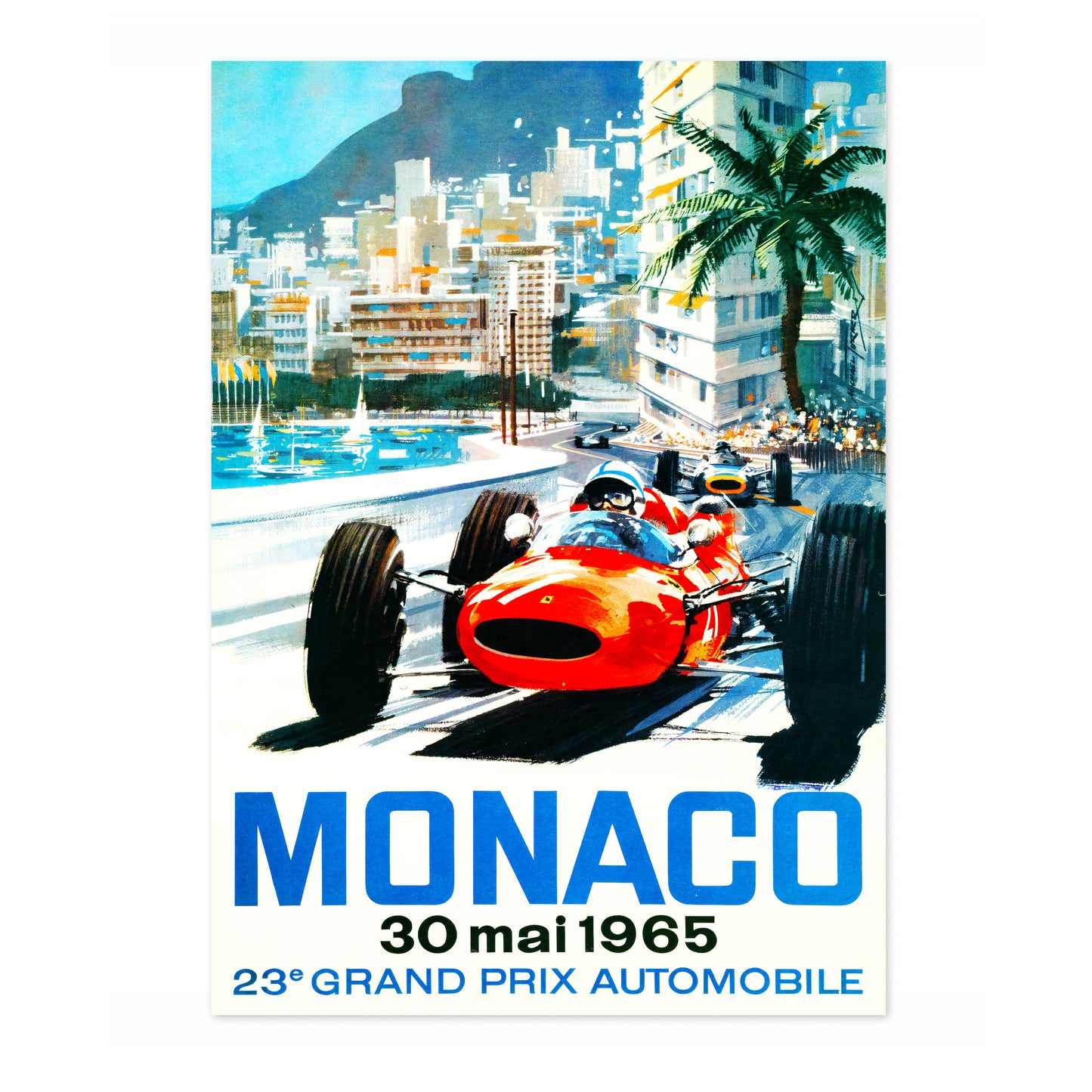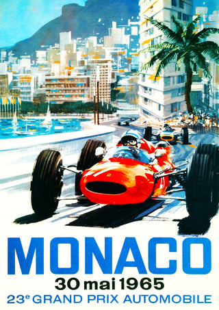 This vintage Monaco Grand Prix 1965 poster captures the exhilarating essence of motorsports. The dynamic watercolour illustration features a classic red race car speeding through the iconic streets of Monaco, set against the stunning Mediterranean backdrop. Perfect for motorsports enthusiasts and art lovers, this piece vividly brings to life the excitement of the 23rd Grand Prix Automobile.