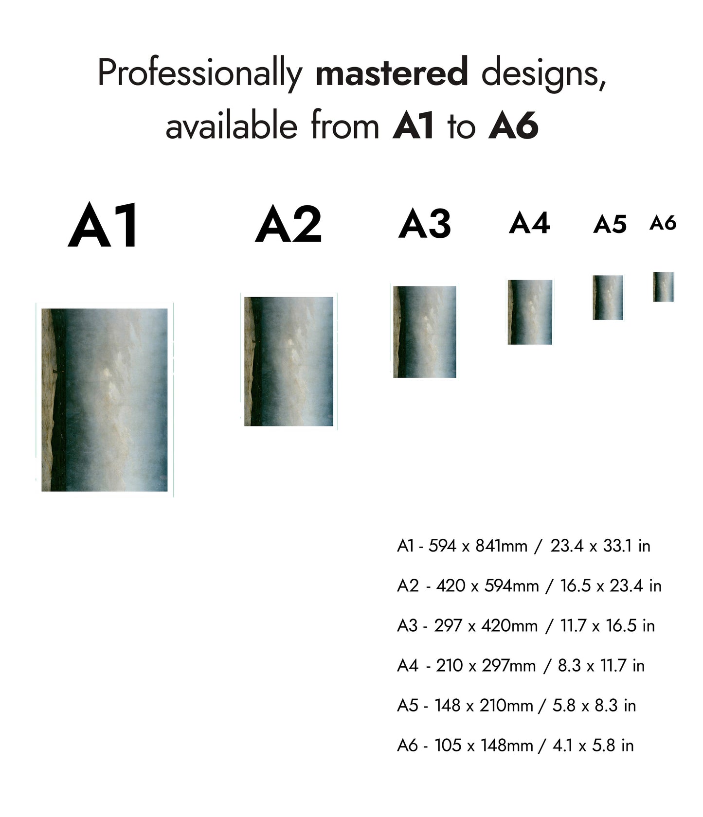 8 colour giclée print process on high-quality 230gsm archival matte paper. All our paper is FSC Certified and prints come with a lifetime fade-resistance guarantee.