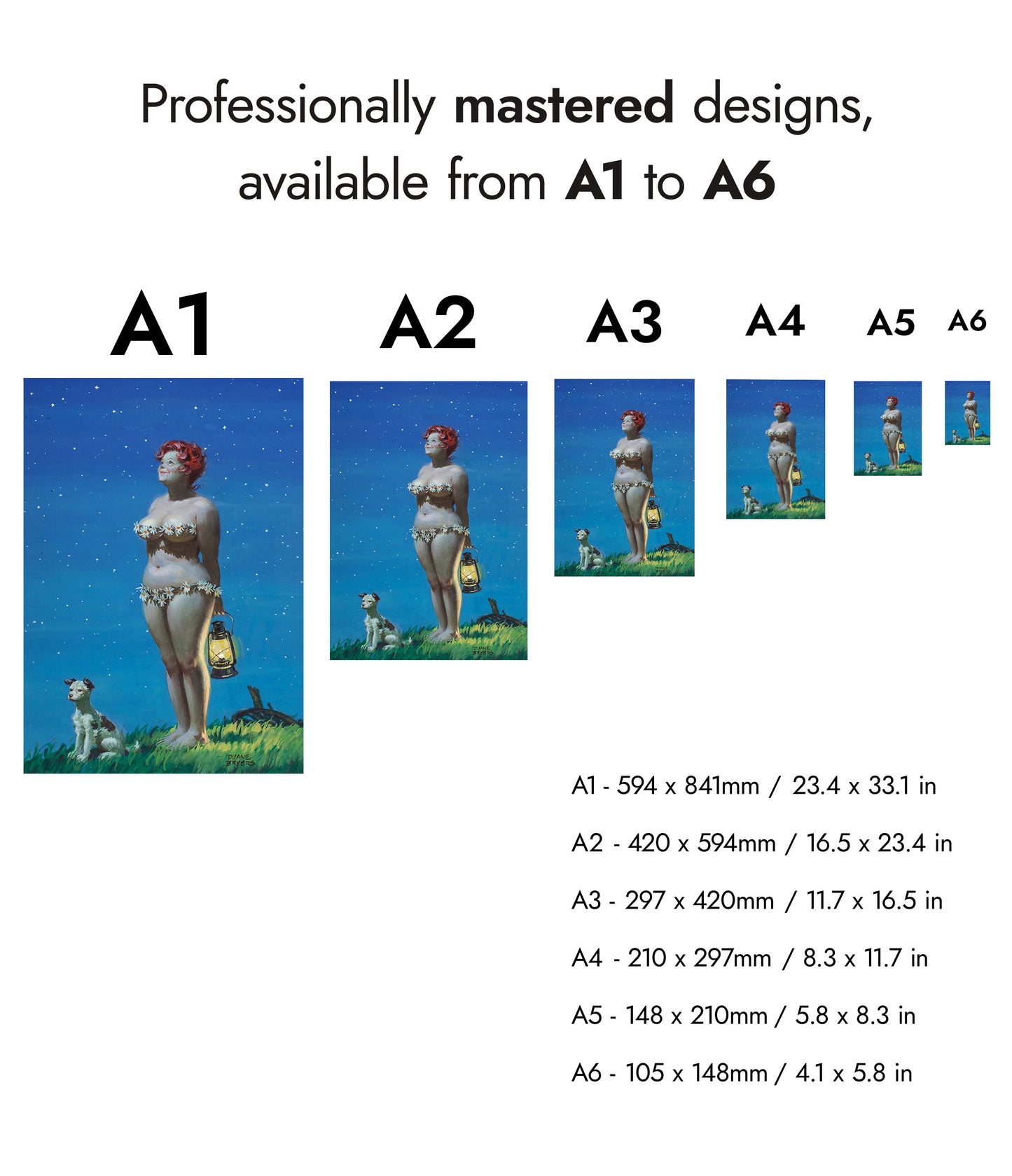 8 colour giclée print process on high-quality 230gsm archival matte paper. All our paper is FSC Certified and prints come with a lifetime fade-resistance guarantee.