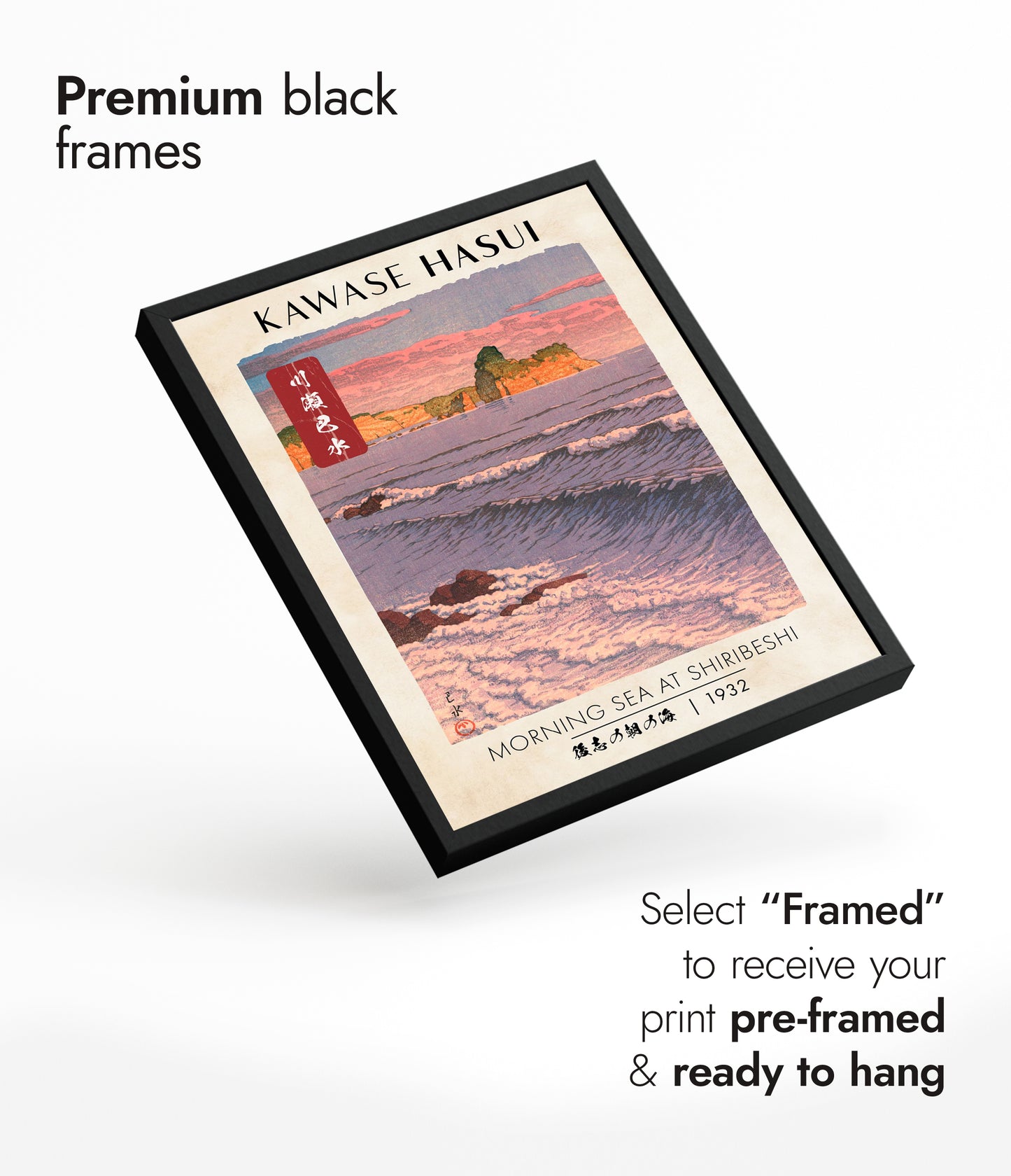 Solid wood frames available in black stained or natural finishes, with UV resistant acrylic glass. Framed orders arrive pre-installed with your choice of print, ready to hang. Available in all print sizes.