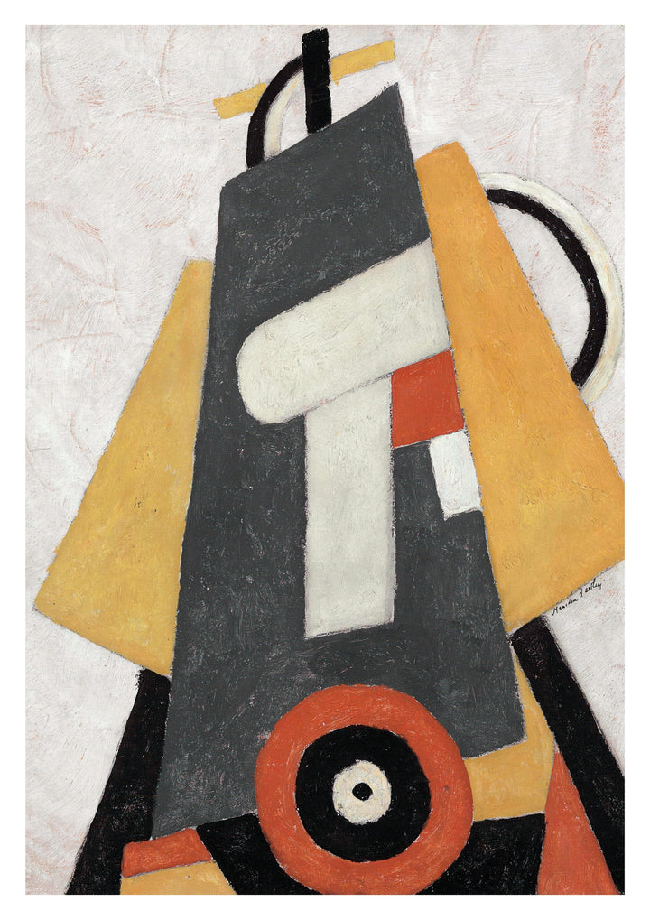 "Movement Sails" poster by Marsden Hartley showcases an abstract geometric design in Modernism style. Dominated by bold shapes and contrasting colours, the piece features triangles, circles, and rectangles intersecting in a dynamic composition. Ideal for adding a touch of artistic sophistication to any space. Perfect for modern art enthusiasts.