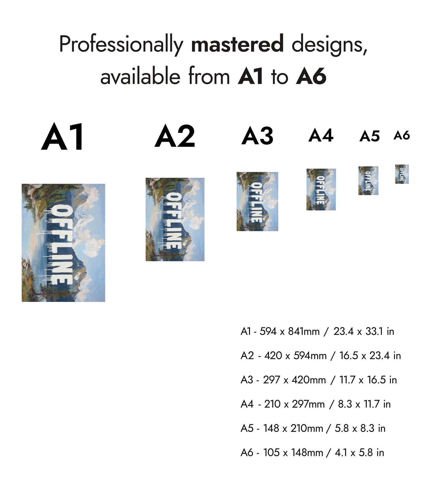 8 colour giclée print process on high-quality 230gsm archival matte paper. All our paper is FSC Certified and prints come with a lifetime fade-resistance guarantee.