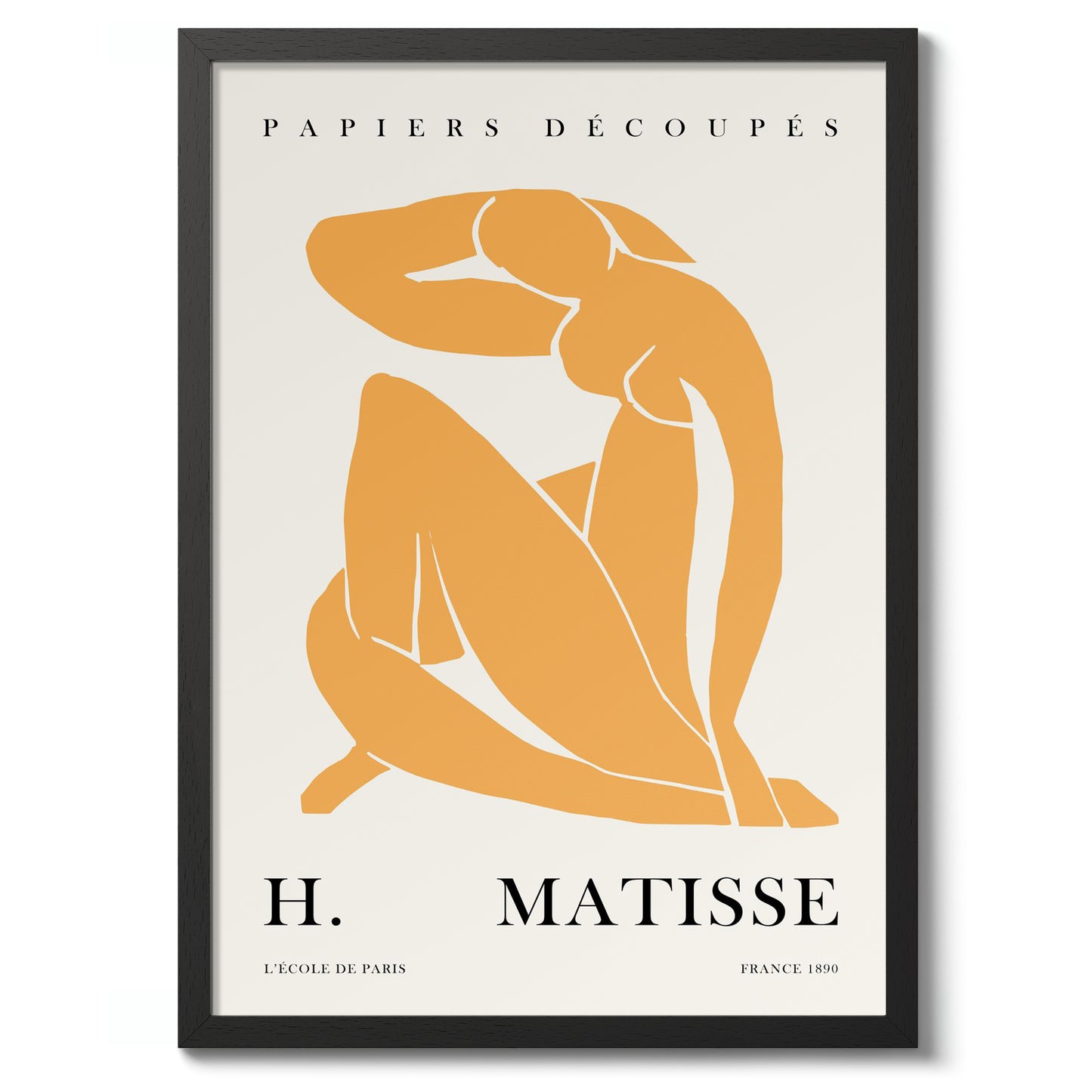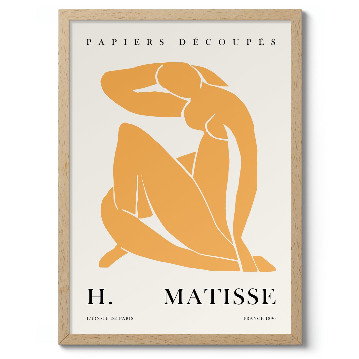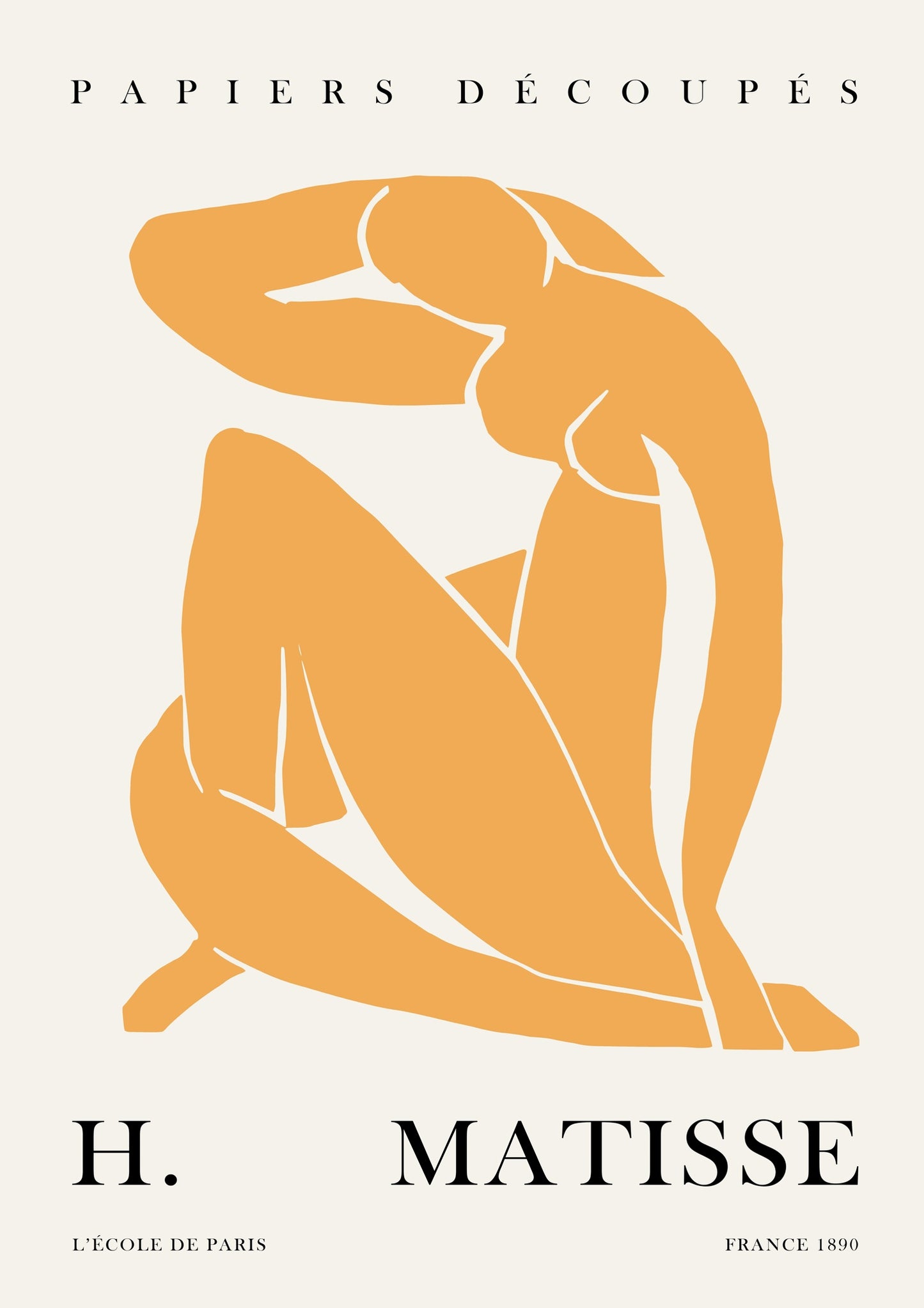 Capture the essence of modern art with the "Orange Nude" poster by Henri Matisse. Featuring a striking silhouette of a reclining nude in vivid orange, this print reflects Matisse's iconic cutout style. The bold lines and minimalist design embody the elegance and dynamism of the human form, ideal for art enthusiasts seeking iconic and evocative wall art. Perfect for contemporary spaces.