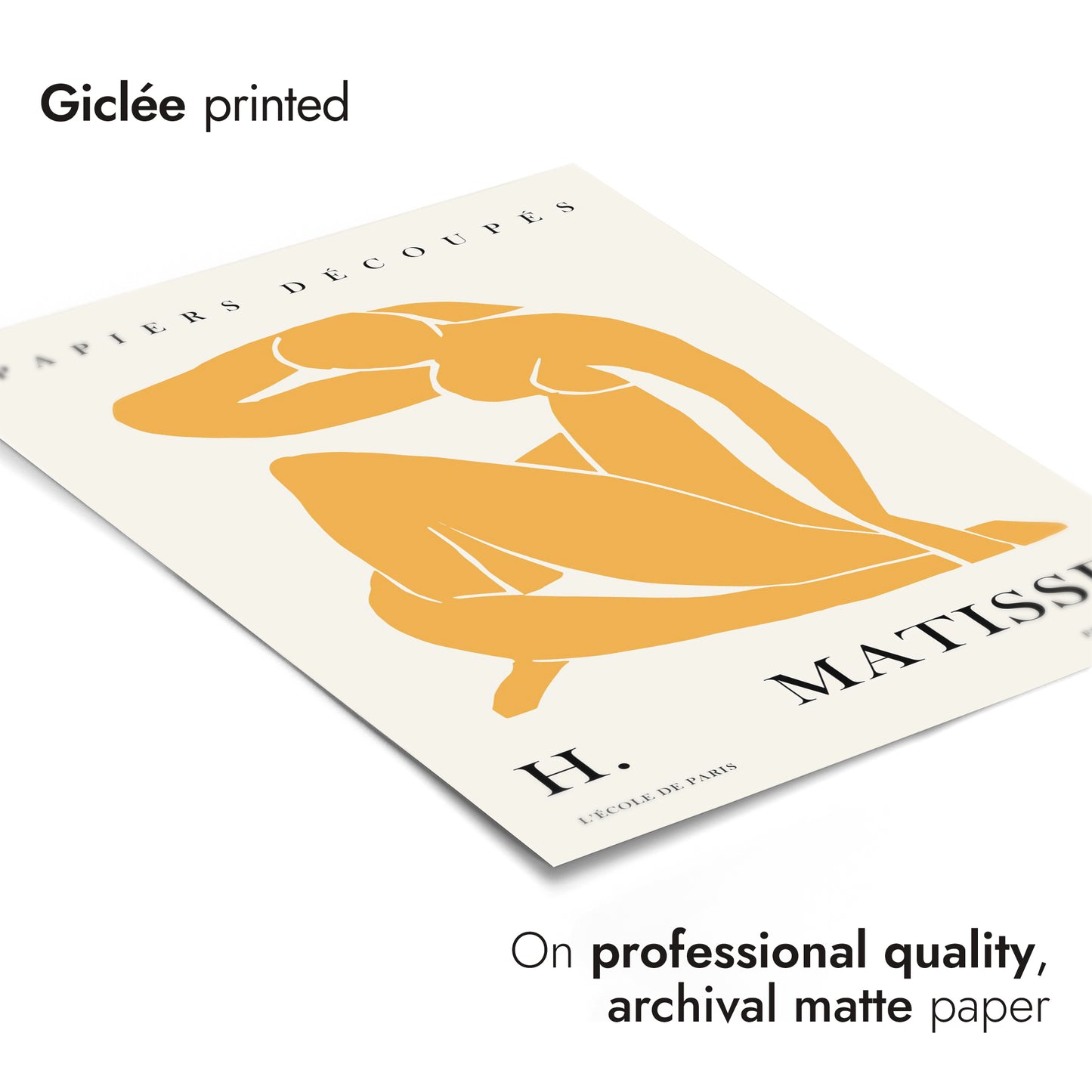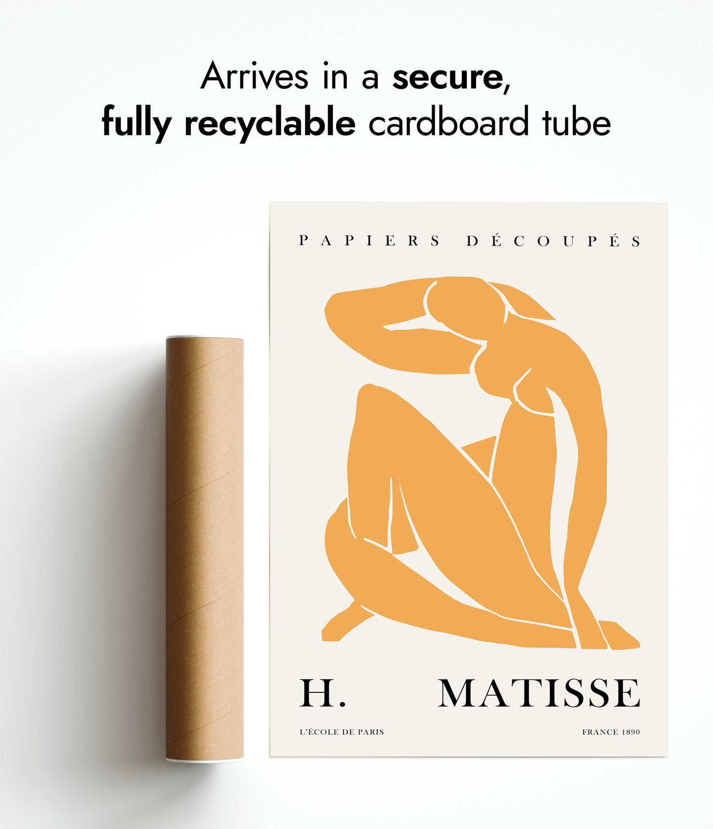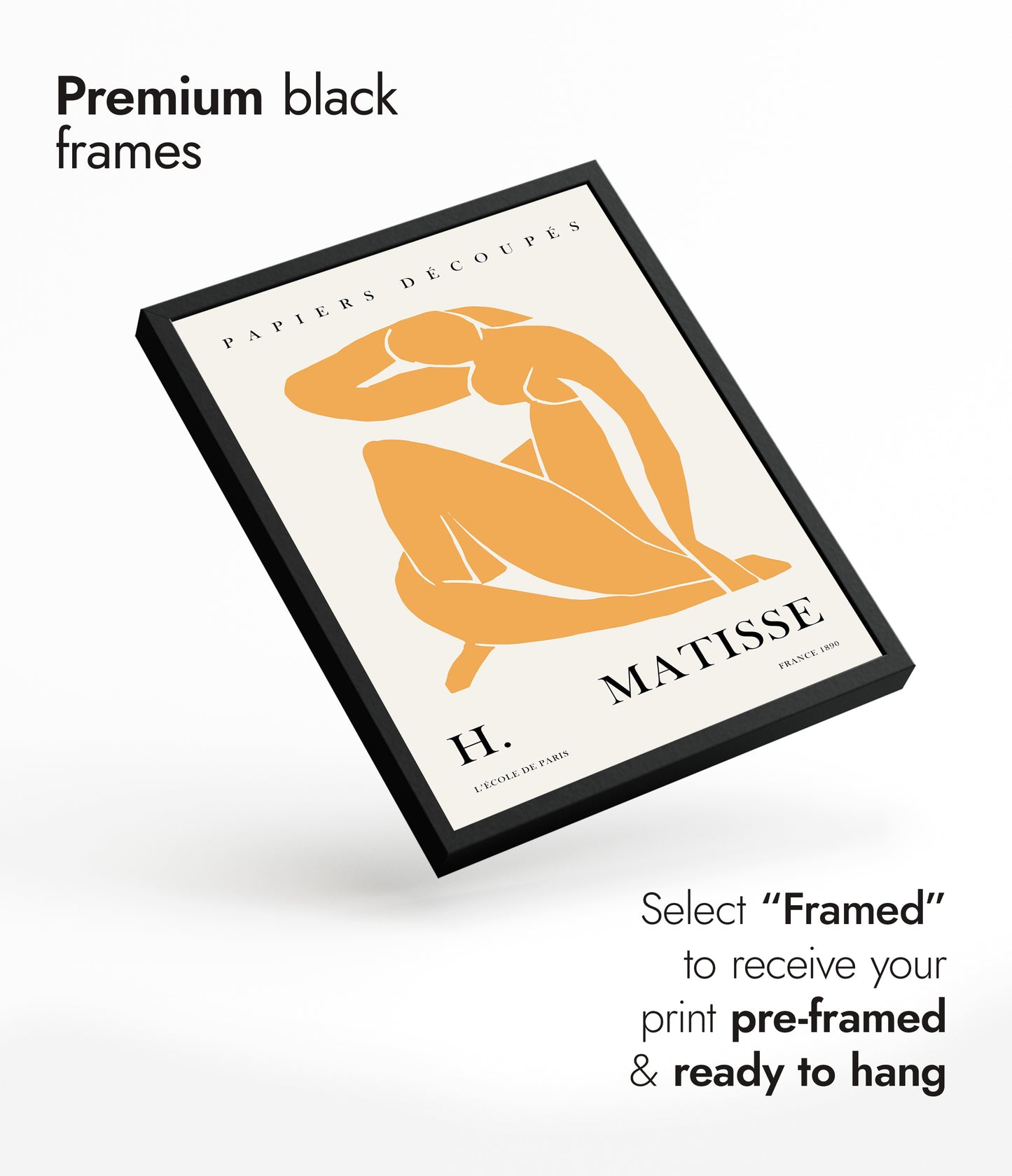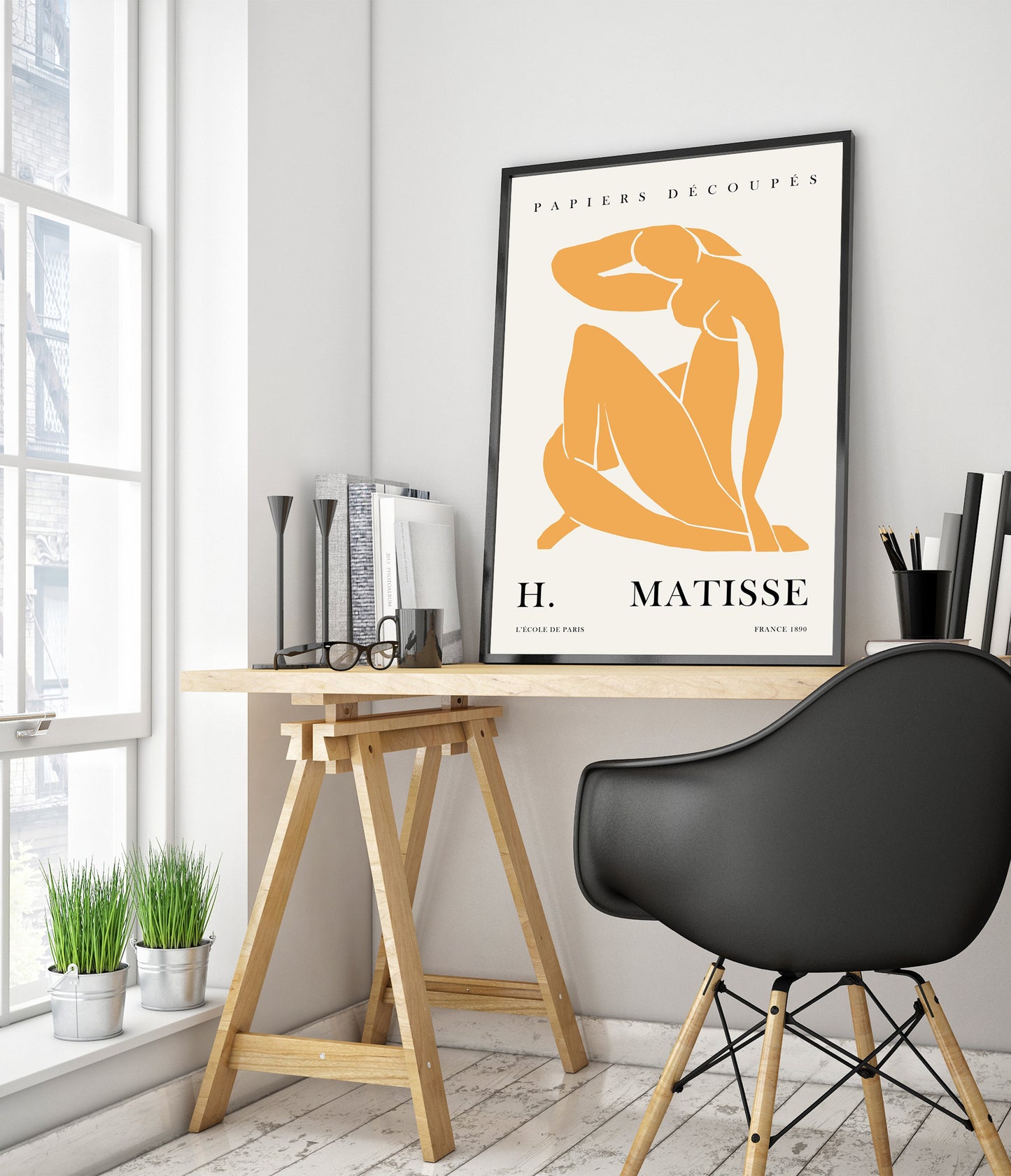 Capture the essence of modern art with the "Orange Nude" poster by Henri Matisse. Featuring a striking silhouette of a reclining nude in vivid orange, this print reflects Matisse's iconic cutout style. The bold lines and minimalist design embody the elegance and dynamism of the human form, ideal for art enthusiasts seeking iconic and evocative wall art. Perfect for contemporary spaces.