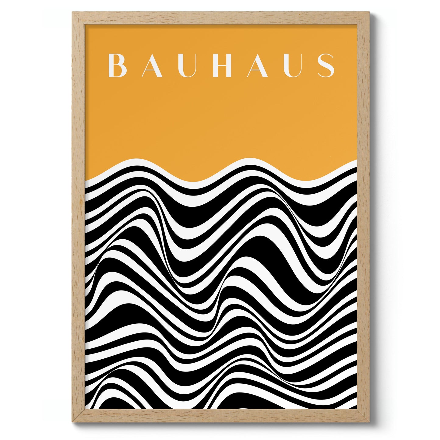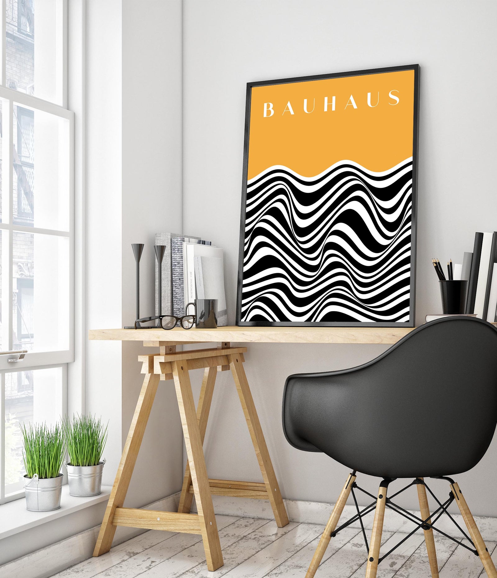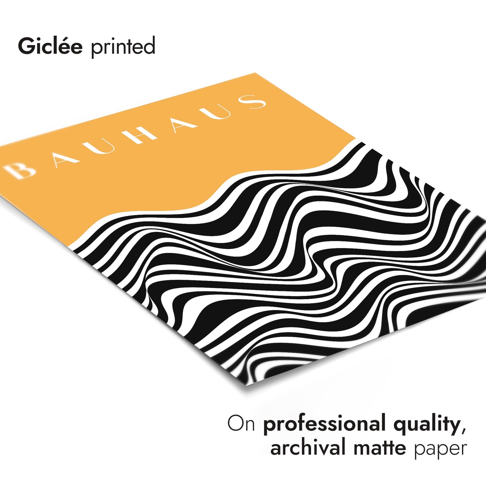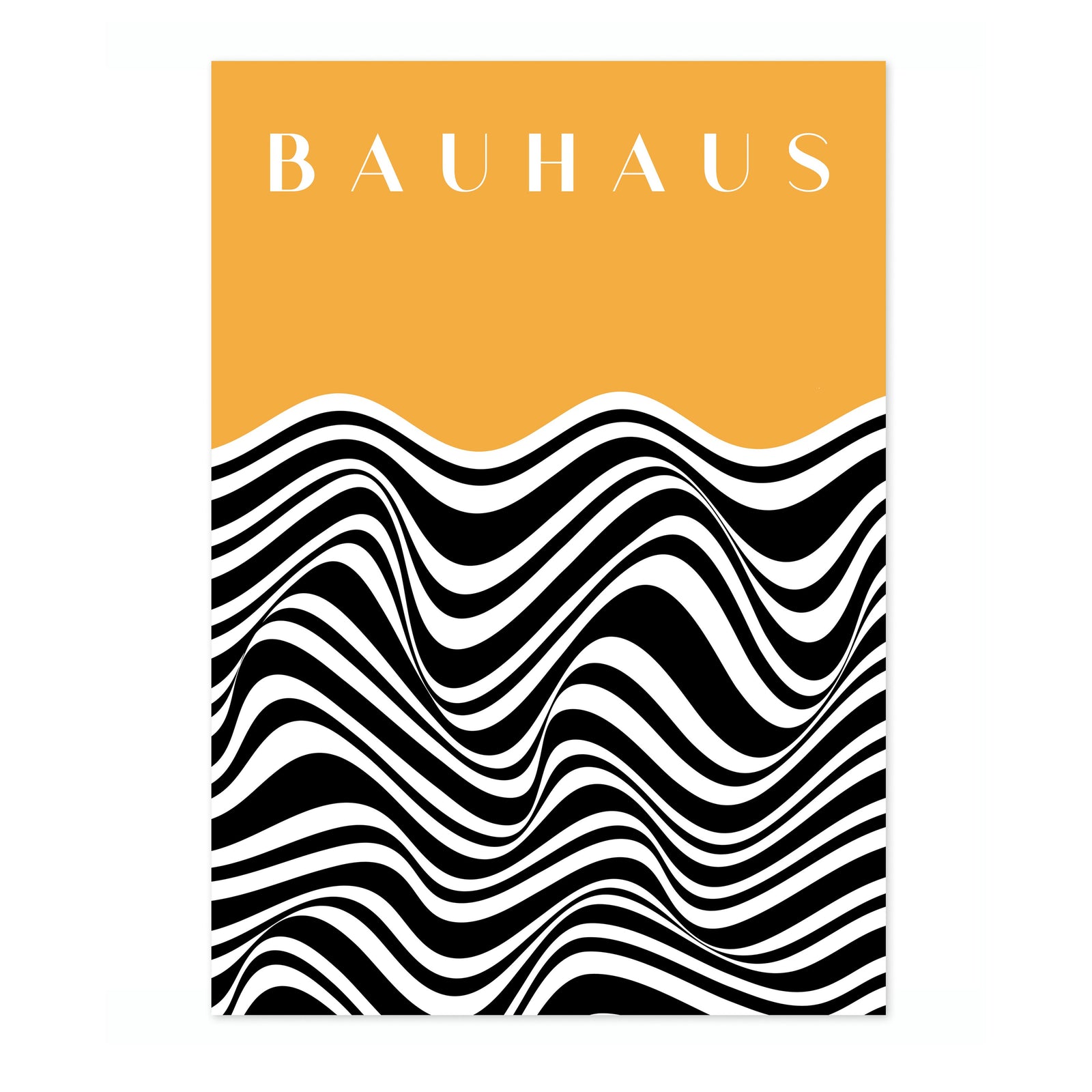 This Bauhaus poster, titled "Orange Swirls," features a striking abstract design combining the vivid contrast of a bold orange background with dynamic black and white wave patterns. Perfect for fans of mid-century graphic and abstract styles, this portrait print adds a modern, artistic touch to any space, highlighting its iconic shapes and swirl themes.