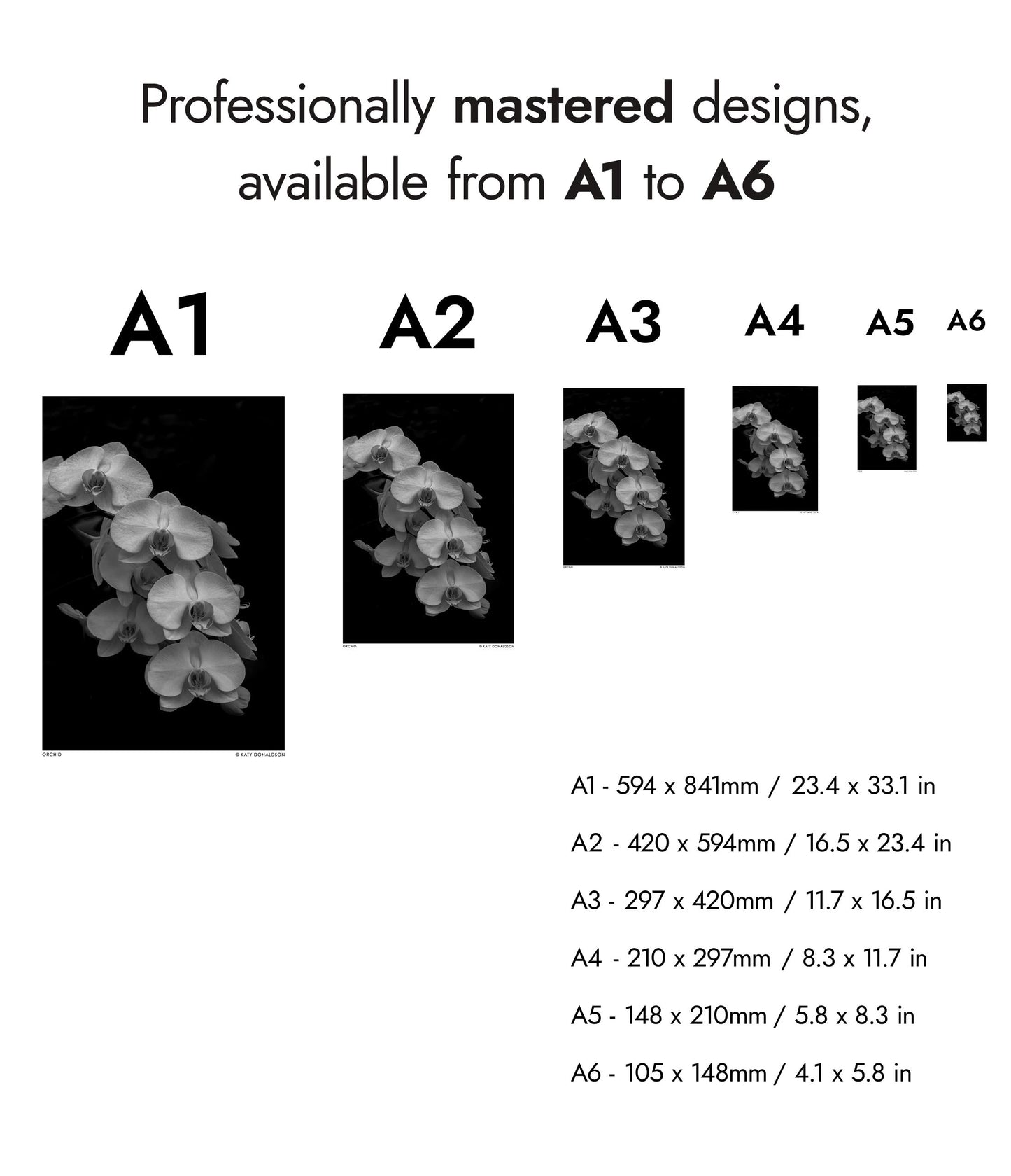 8 colour giclée print process on high-quality 230gsm archival matte paper. All our paper is FSC Certified and prints come with a lifetime fade-resistance guarantee.