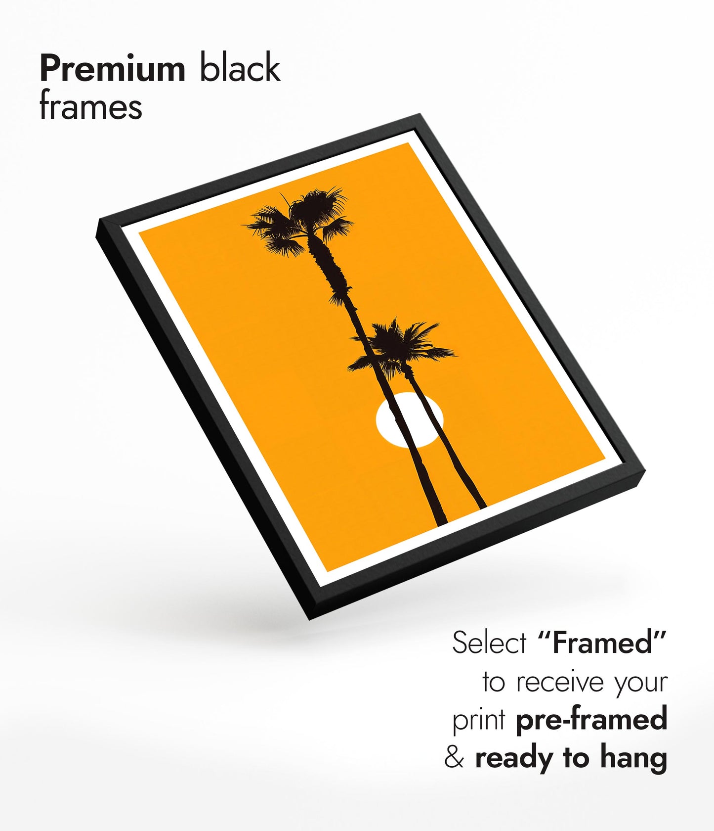 Solid wood frames available in black stained or natural finishes, with UV resistant acrylic glass. Framed orders arrive pre-installed with your choice of print, ready to hang. Available in all print sizes.