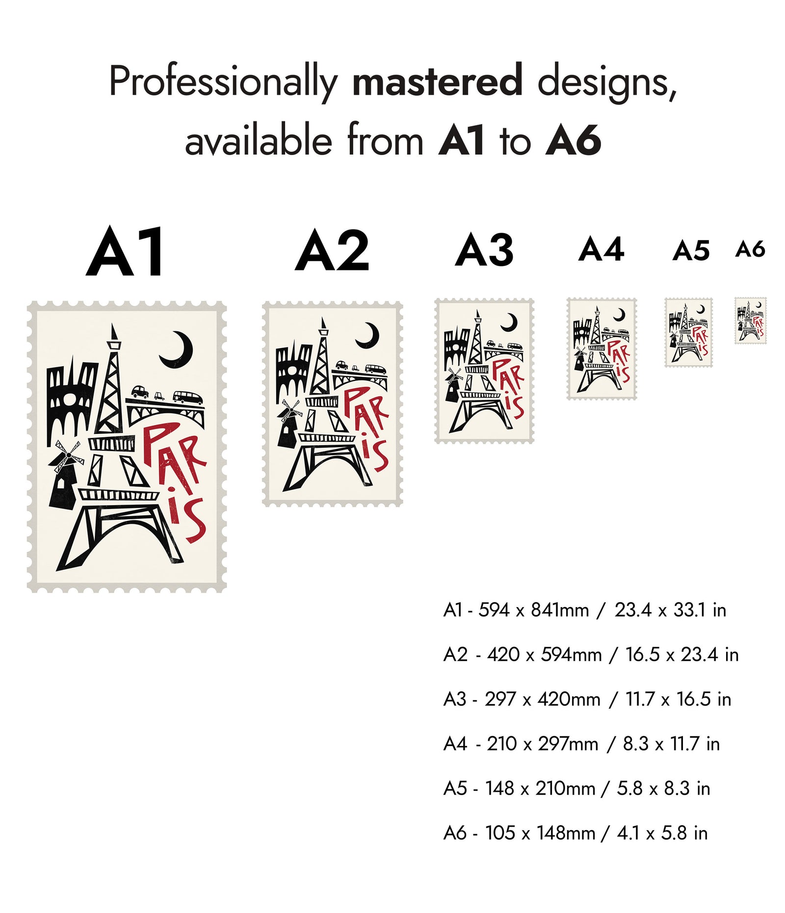 8 colour giclée print process on high-quality 230gsm archival matte paper. All our paper is FSC Certified and prints come with a lifetime fade-resistance guarantee.