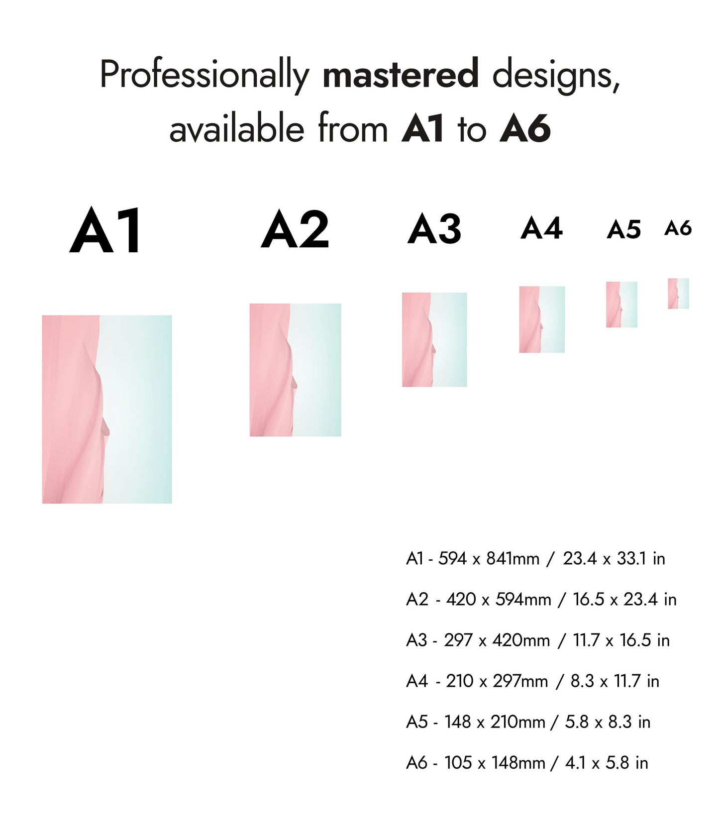 8 colour giclée print process on high-quality 230gsm archival matte paper. All our paper is FSC Certified and prints come with a lifetime fade-resistance guarantee.