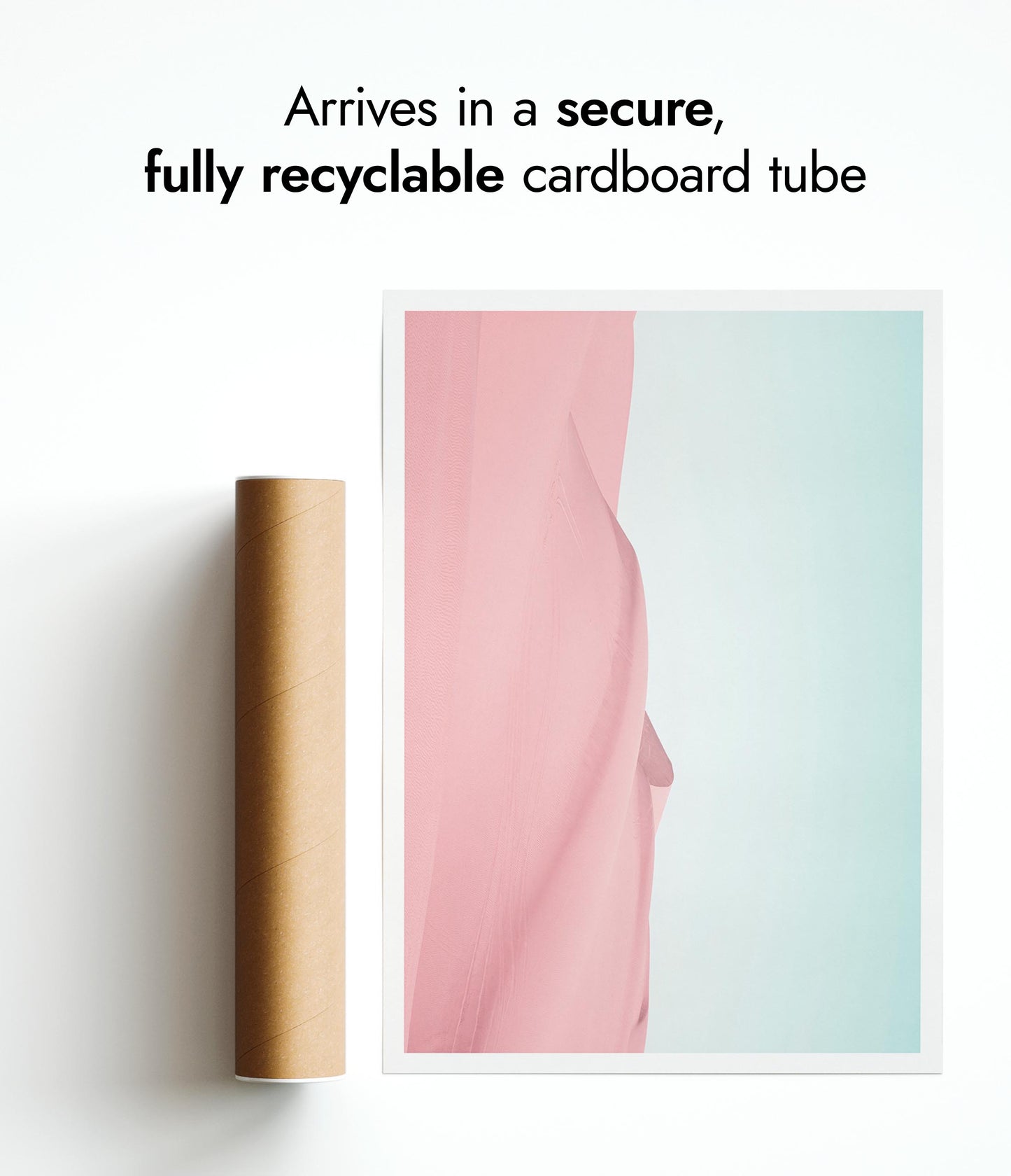 All orders are securely packed in recyclable, eco-friendly solutions. Frames are protected with sustainable bubble wrap alternatives inside thick boxes. Print only orders are shipped in heavy-duty cardboard tubes or protective hard-backed envelopes.