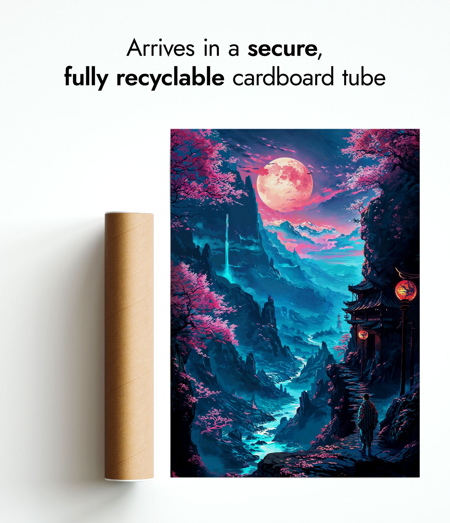 All orders are securely packed in recyclable, eco-friendly solutions. Frames are protected with sustainable bubble wrap alternatives inside thick boxes. Print only orders are shipped in heavy-duty cardboard tubes or protective hard-backed envelopes.