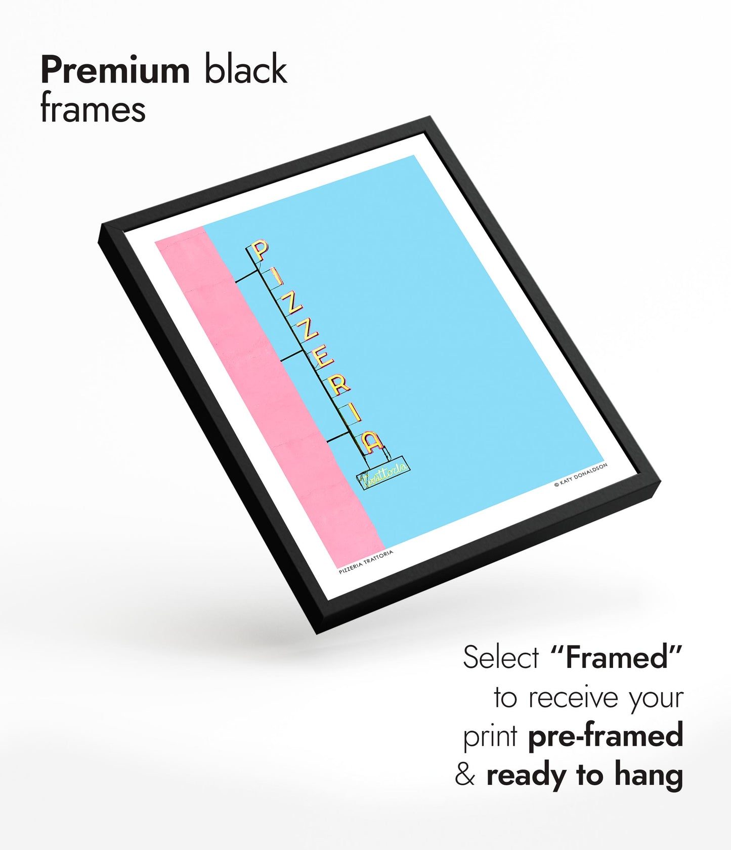 Solid wood frames available in black stained or natural finishes, with UV resistant acrylic glass. Framed orders arrive pre-installed with your choice of print, ready to hang. Available in all print sizes.