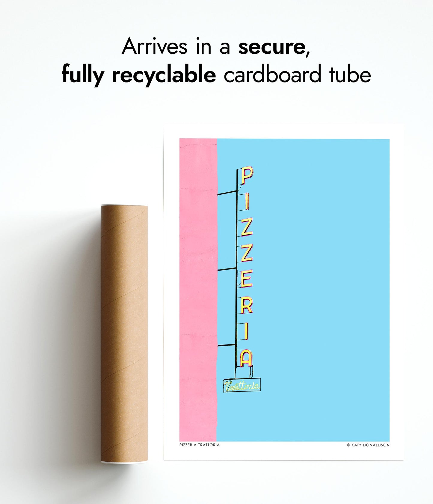 All orders are securely packed in recyclable, eco-friendly solutions. Frames are protected with sustainable bubble wrap alternatives inside thick boxes. Print only orders are shipped in heavy-duty cardboard tubes or protective hard-backed envelopes.