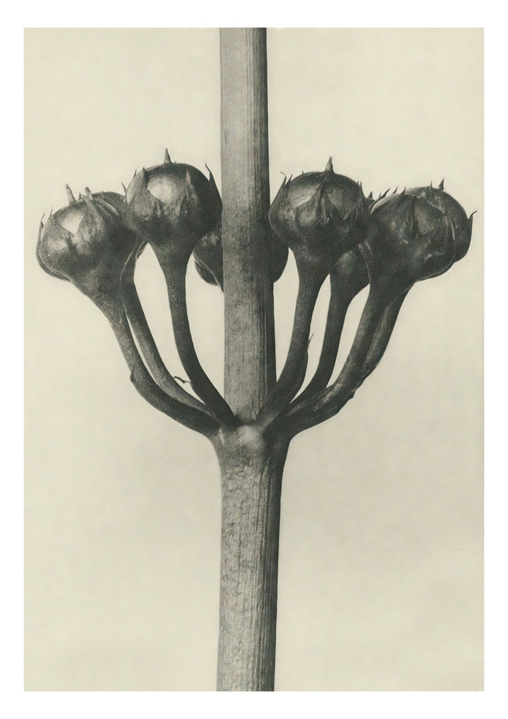Capture nature's intricate beauty with "Plantstudie 2" by Karl Blossfeldt. This black-and-white photographic poster exemplifies vintage elegance through a detailed, still-life depiction of a plant's bloom. Perfect for enthusiasts of botanical art and photographic still life, this artwork brings a timeless essence of nature into any space. Ideal for adding a historical touch to any room.