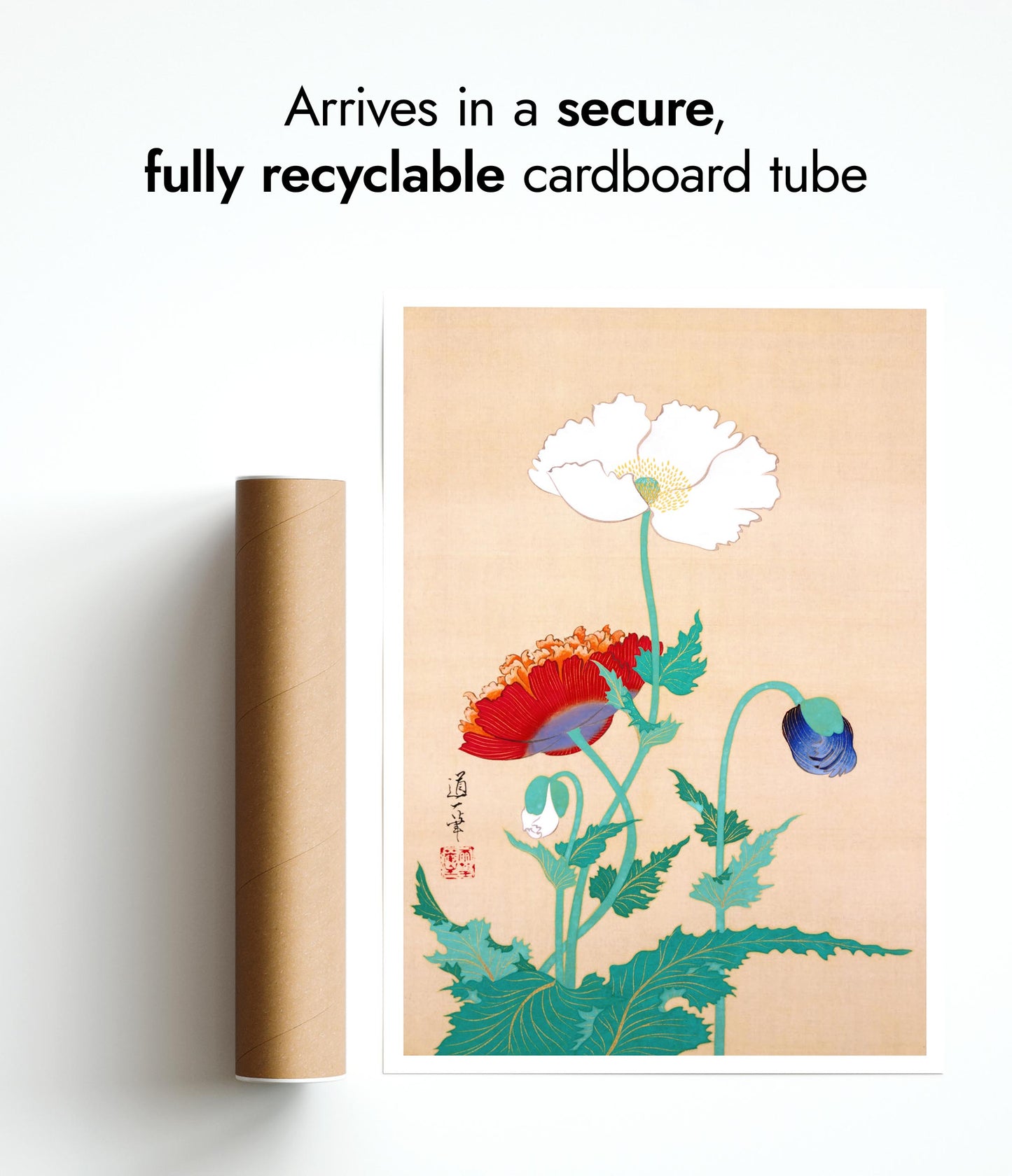 All orders are securely packed in recyclable, eco-friendly solutions. Frames are protected with sustainable bubble wrap alternatives inside thick boxes. Print only orders are shipped in heavy-duty cardboard tubes or protective hard-backed envelopes.