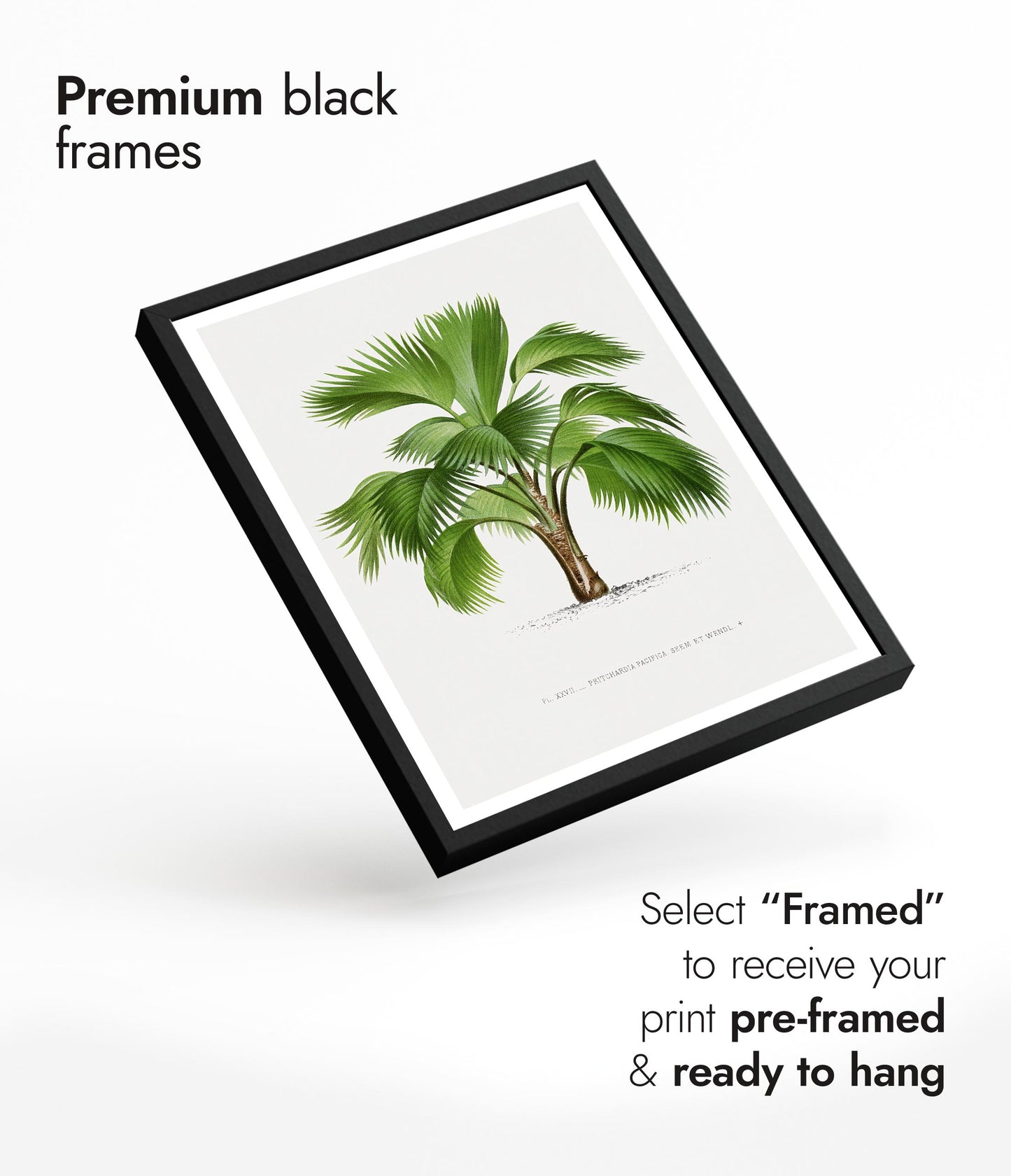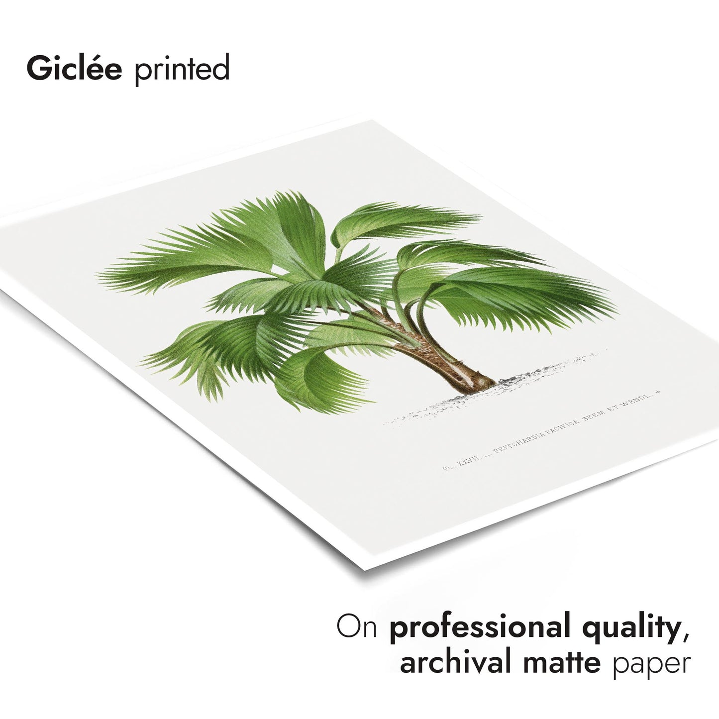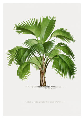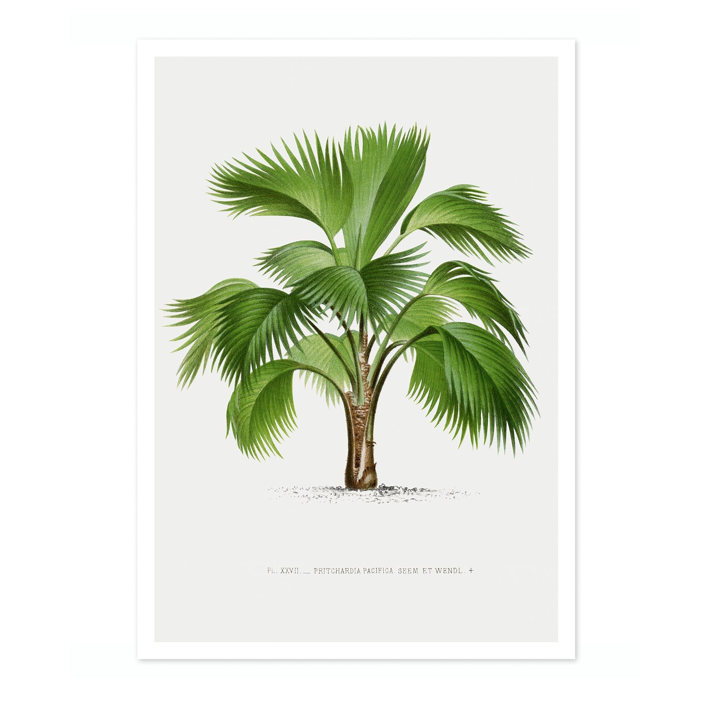 This vintage-style poster, titled "Pritchardia Pacifica" by Oswald De Kerchove De Denterghem, features an intricate illustration of a lush palm tree. Rendered with meticulous detail, the green fronds stand out against a clean white background, making it an exquisite piece for botanical and nature-themed decor. Perfect for adding a touch of tropical elegance to any space.