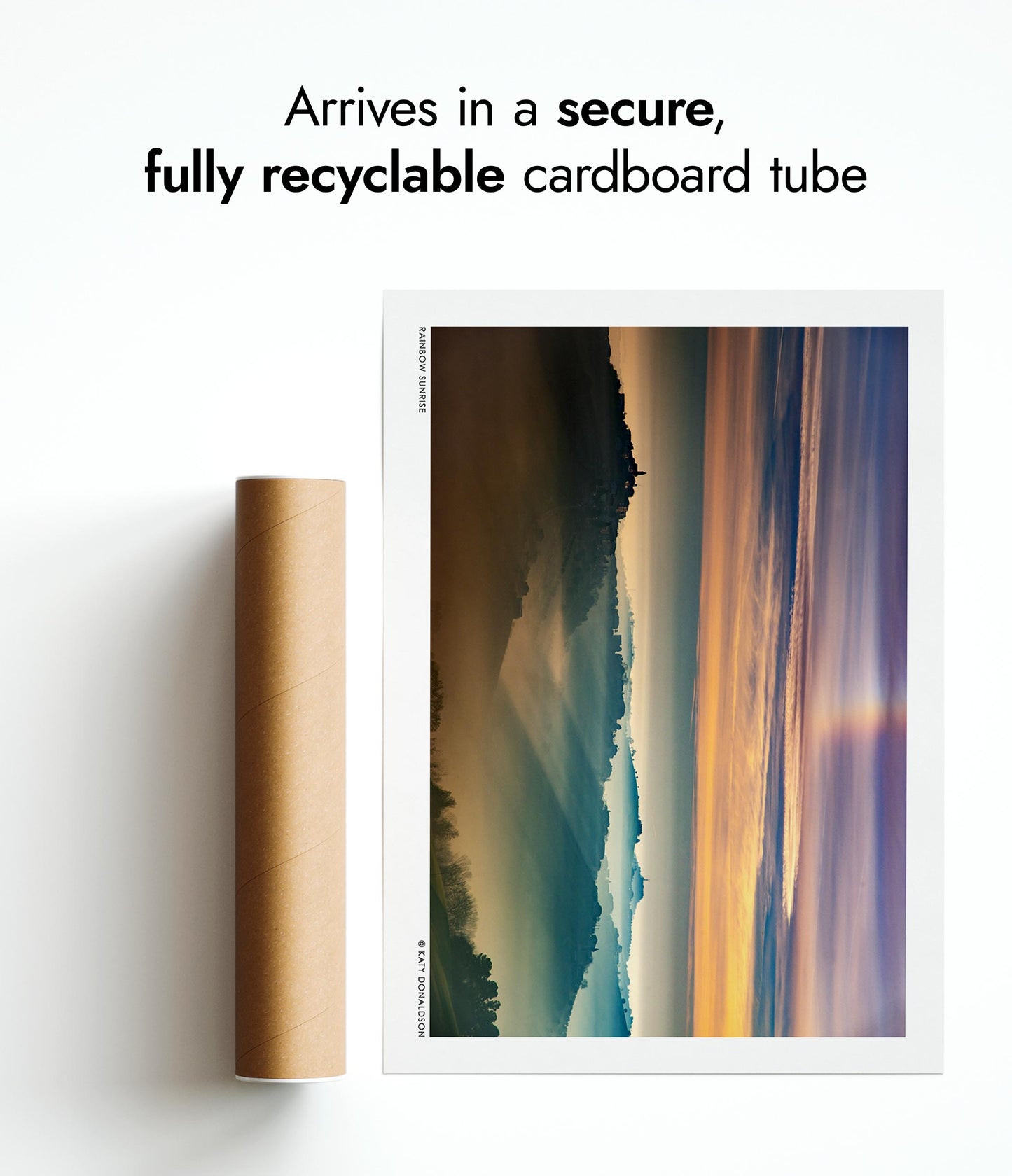 All orders are securely packed in recyclable, eco-friendly solutions. Frames are protected with sustainable bubble wrap alternatives inside thick boxes. Print only orders are shipped in heavy-duty cardboard tubes or protective hard-backed envelopes.
