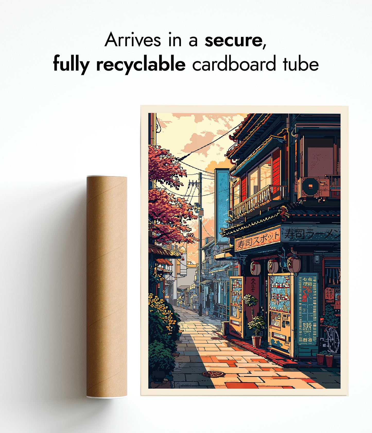 All orders are securely packed in recyclable, eco-friendly solutions. Frames are protected with sustainable bubble wrap alternatives inside thick boxes. Print only orders are shipped in heavy-duty cardboard tubes or protective hard-backed envelopes.