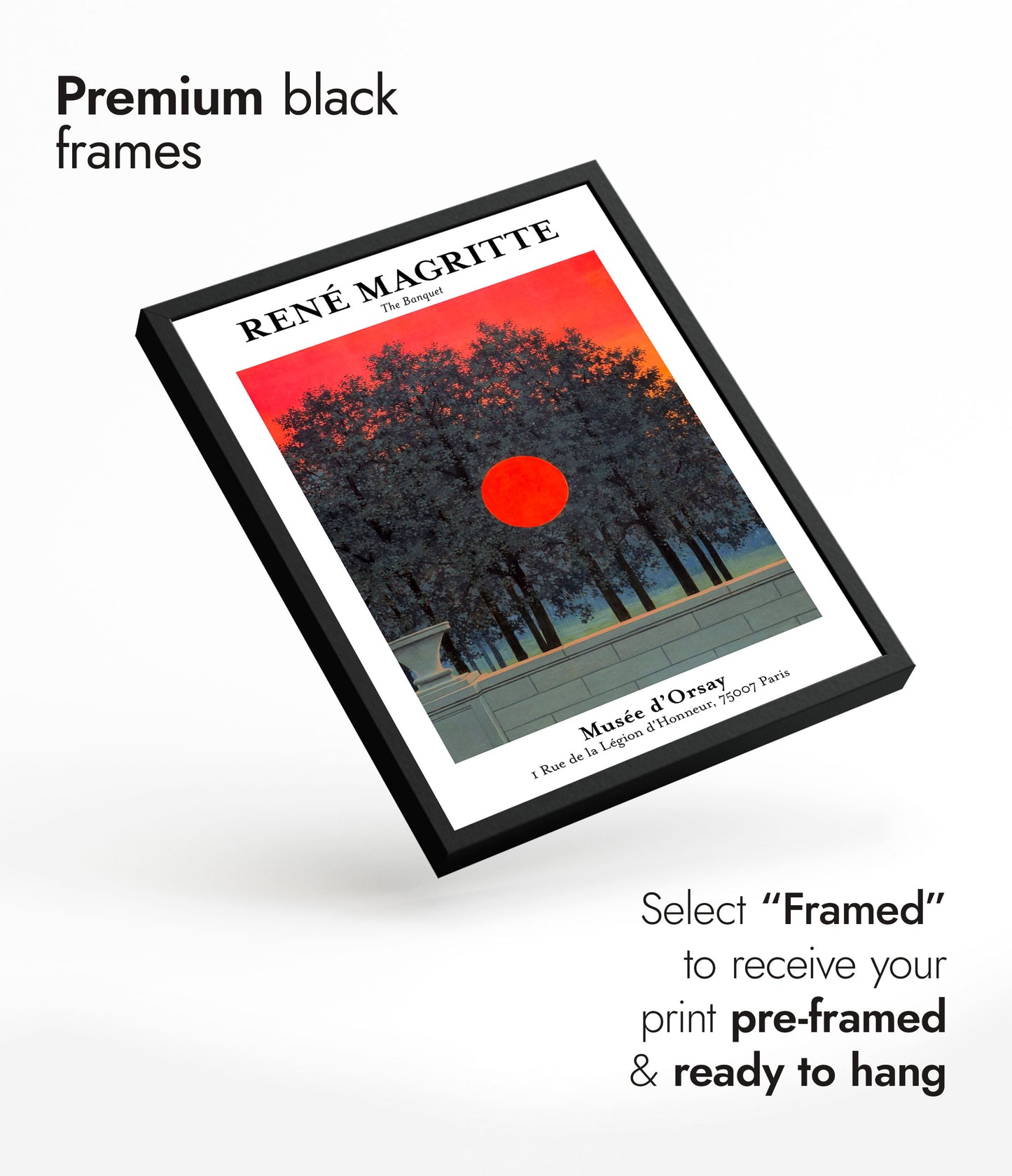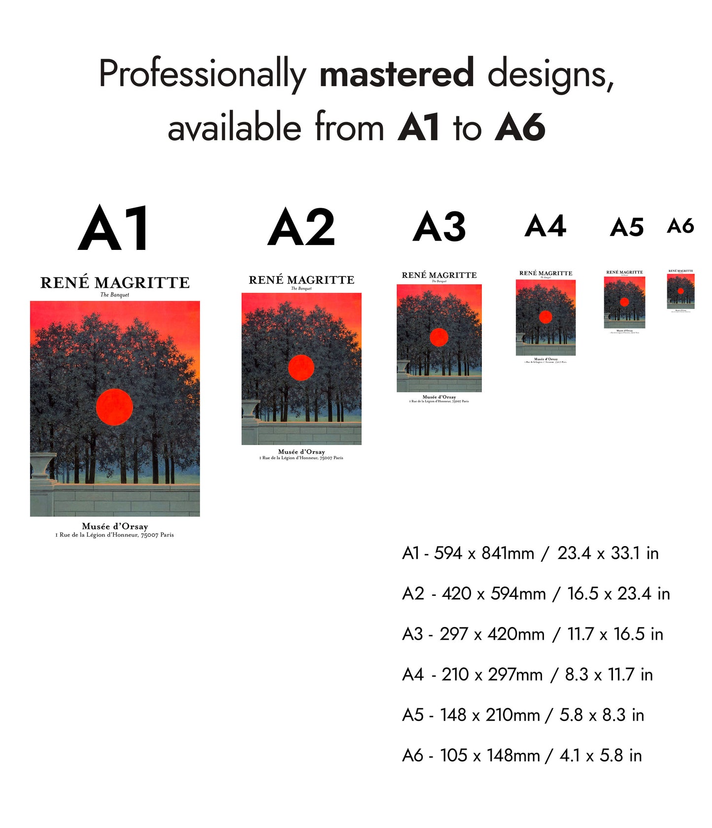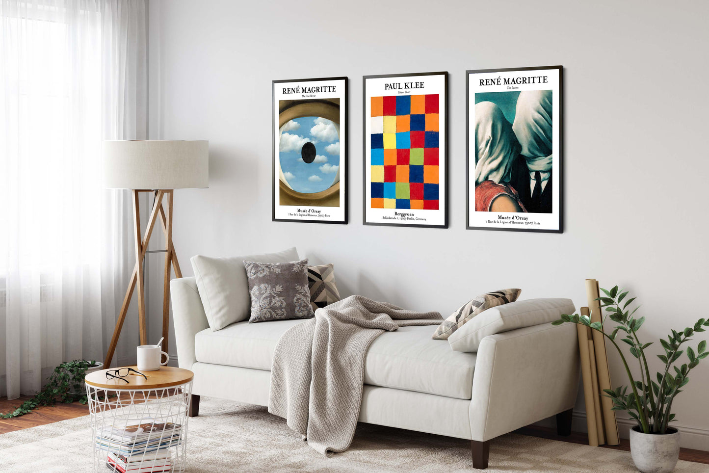 This set of three René Magritte posters beautifully captures the essence of surrealism, featuring distinct elements like an enigmatic eye, a forest at sunset, and an abstract couple. Each poster is representative of Magritte's unique, thought-provoking style, offering viewers a glimpse into his imaginative and dream-like worlds. Ideal for art enthusiasts, these prints are perfect for adding a touch of the surreal to any space.