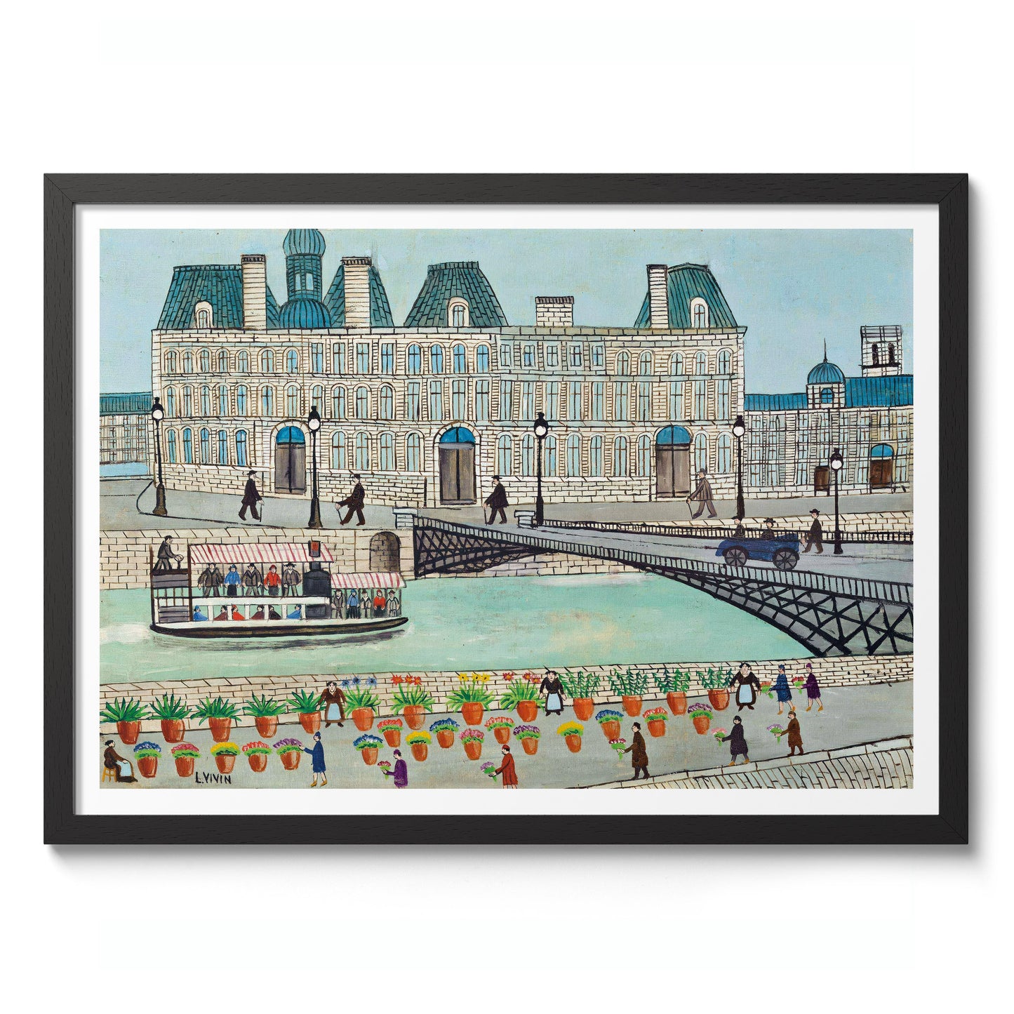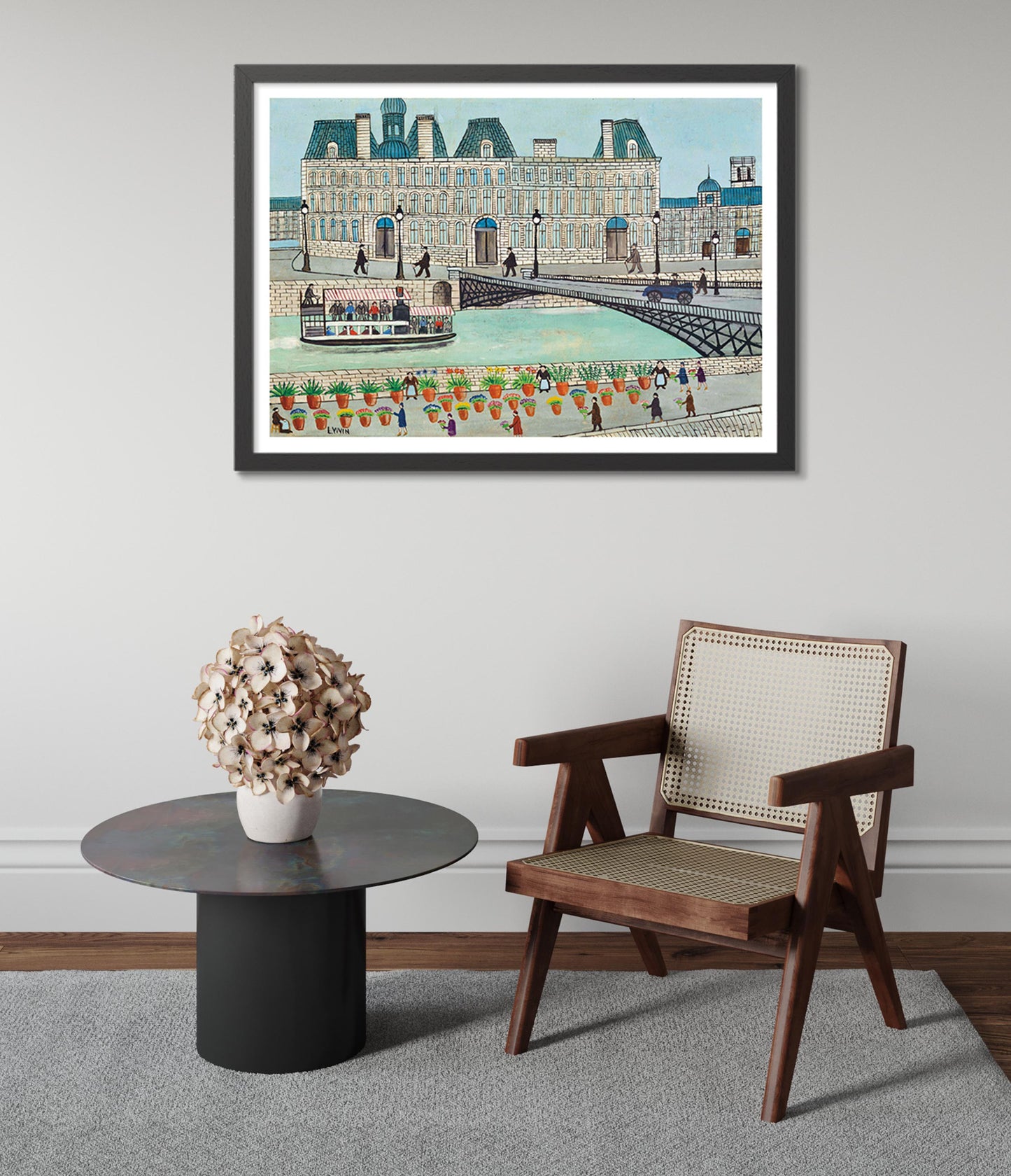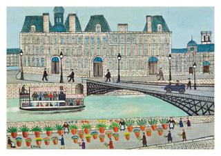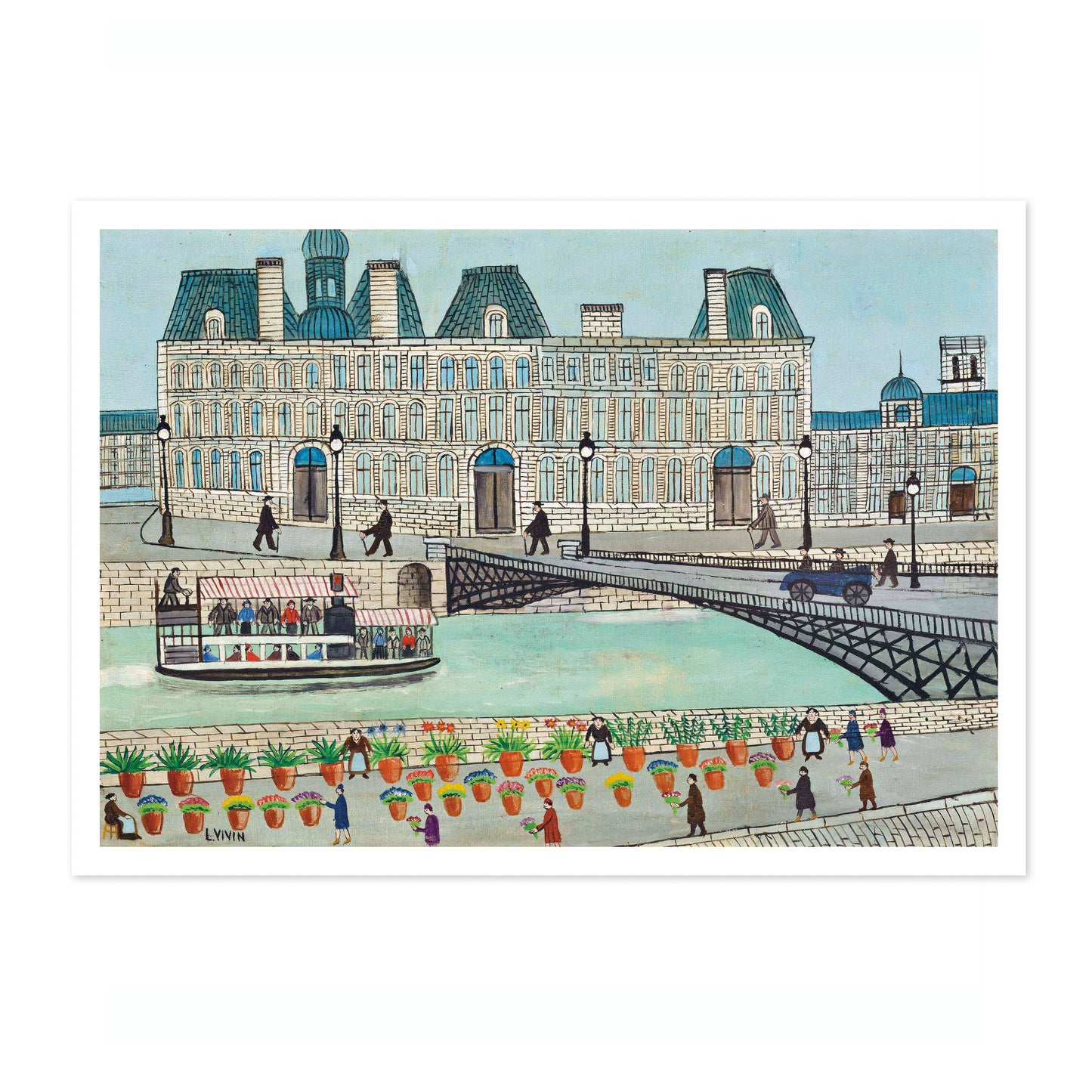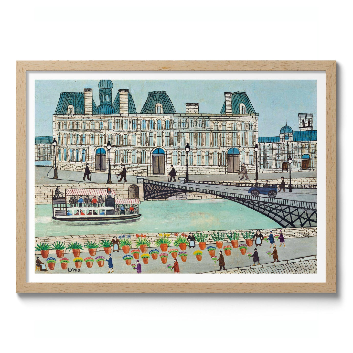 "Sacré Coeur" by Louis Vivin captures a bustling Parisian scene with detailed architecture and lively street activity. Naive and primitivist in style, this poster features a river, bridge, and boat, emphasizing urban life. The intricate details and vibrant colours bring the city's essence to life, ideal for those appreciating classic cityscapes and architectural art.