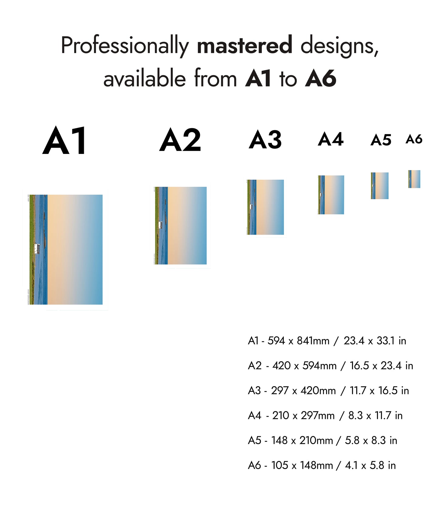 8 colour giclée print process on high-quality 230gsm archival matte paper. All our paper is FSC Certified and prints come with a lifetime fade-resistance guarantee.