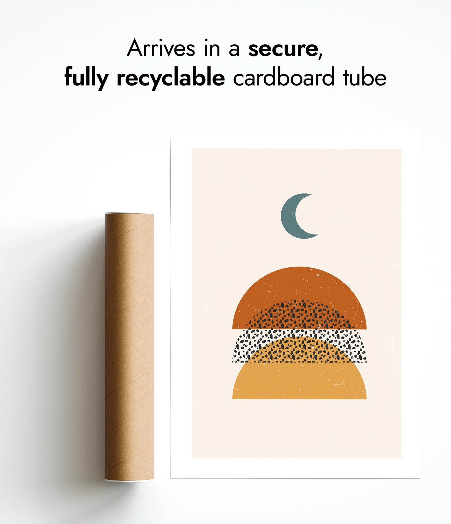 All orders are securely packed in recyclable, eco-friendly solutions. Frames are protected with sustainable bubble wrap alternatives inside thick boxes. Print only orders are shipped in heavy-duty cardboard tubes or protective hard-backed envelopes.
