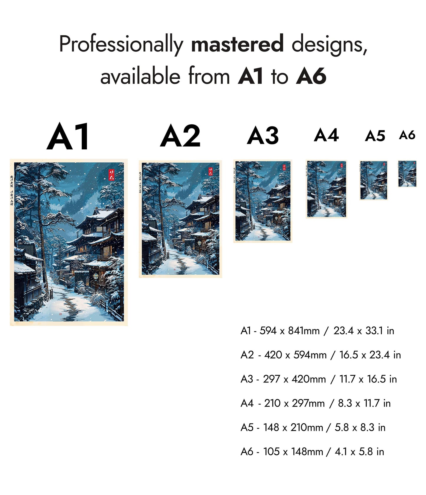 8 colour giclée print process on high-quality 230gsm archival matte paper. All our paper is FSC Certified and prints come with a lifetime fade-resistance guarantee.