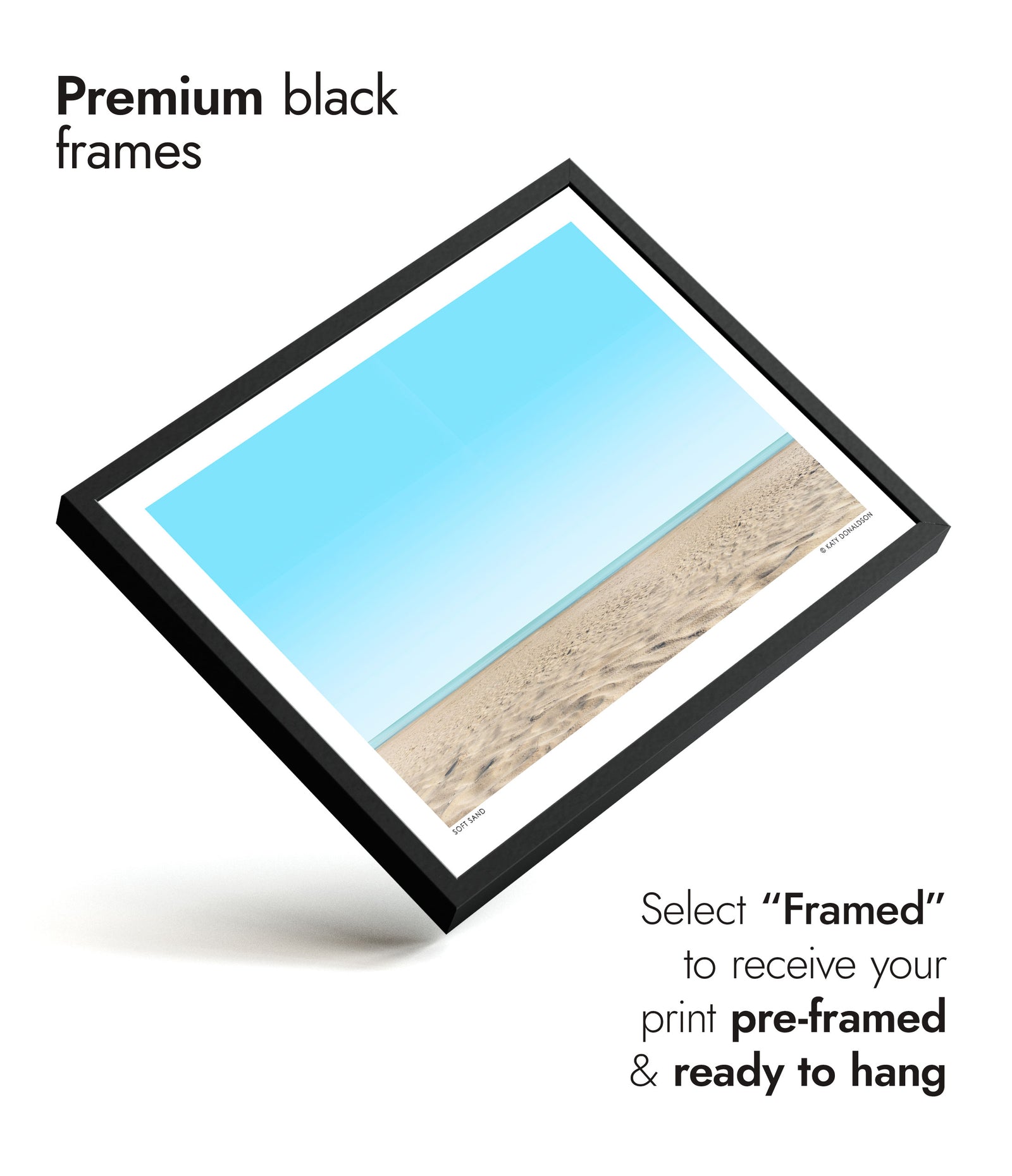 Solid wood frames available in black stained or natural finishes, with UV resistant acrylic glass. Framed orders arrive pre-installed with your choice of print, ready to hang. Available in all print sizes.