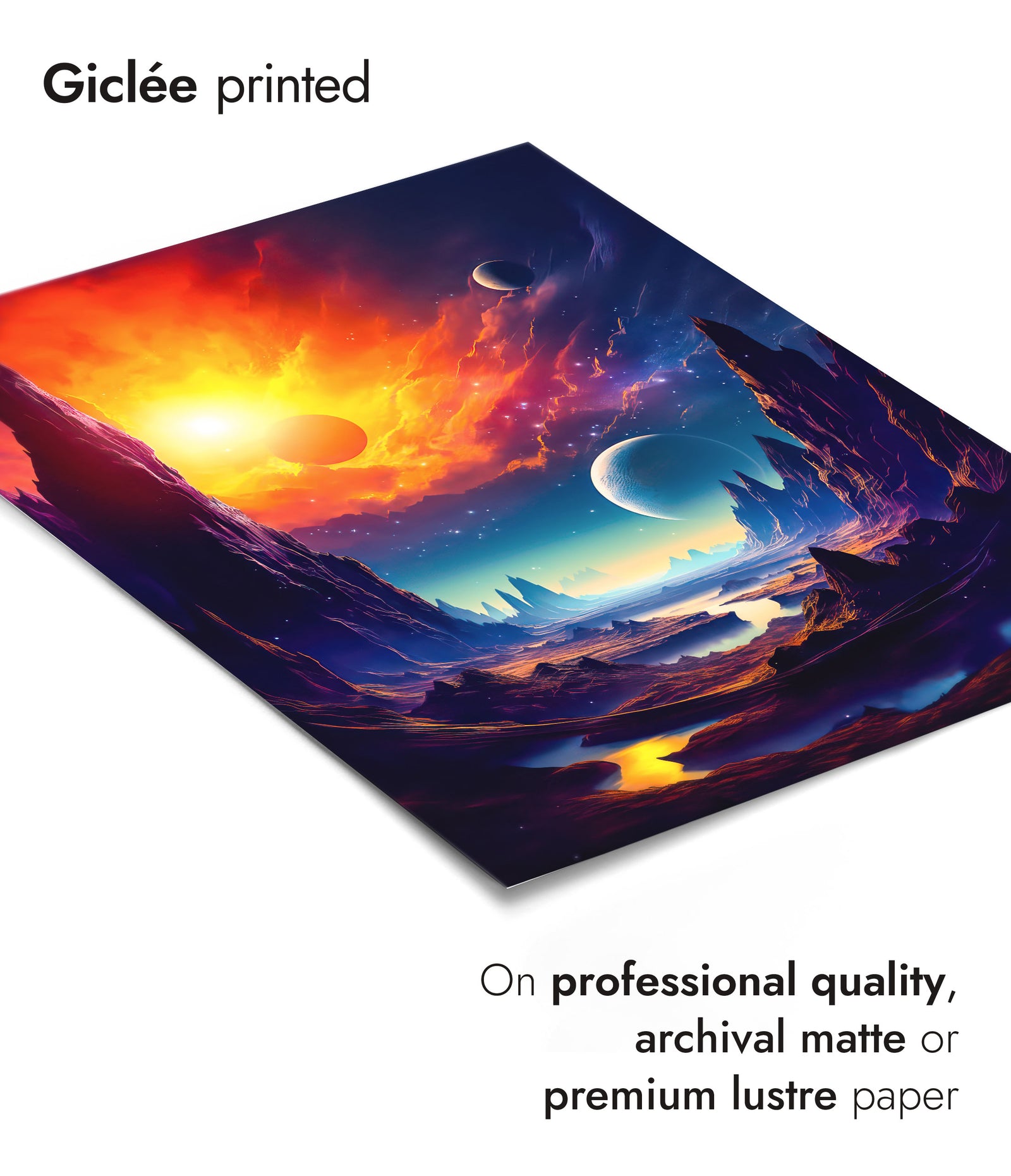 8 colour gicleé print process on FSC-certified 200gsm archival matte paper, with lifetime fade-resistance guaranteed.
