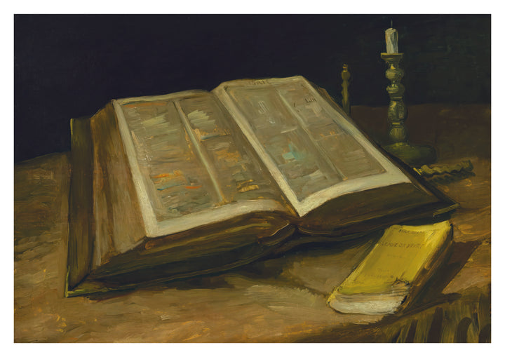 "Still Life with Bible" by Vincent Van Gogh, captures the serene and contemplative essence of post-Impressionism. This art print poster features a meticulously detailed open Bible and a lit candle, invoking themes of reflection and spirituality. Van Gogh's masterful use of shadows and earthy tones adds depth and realism, making this a timeless piece for any art enthusiast.