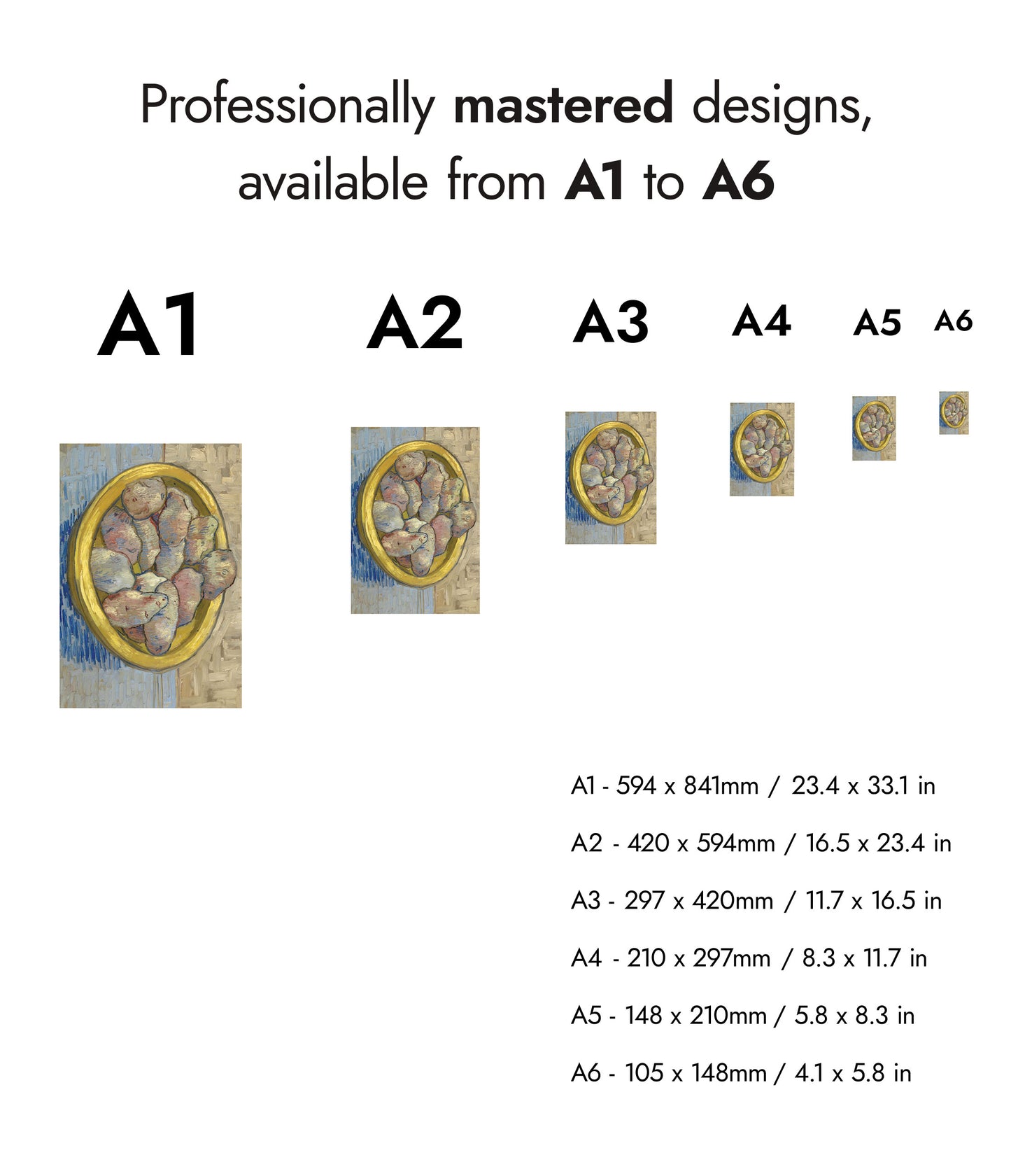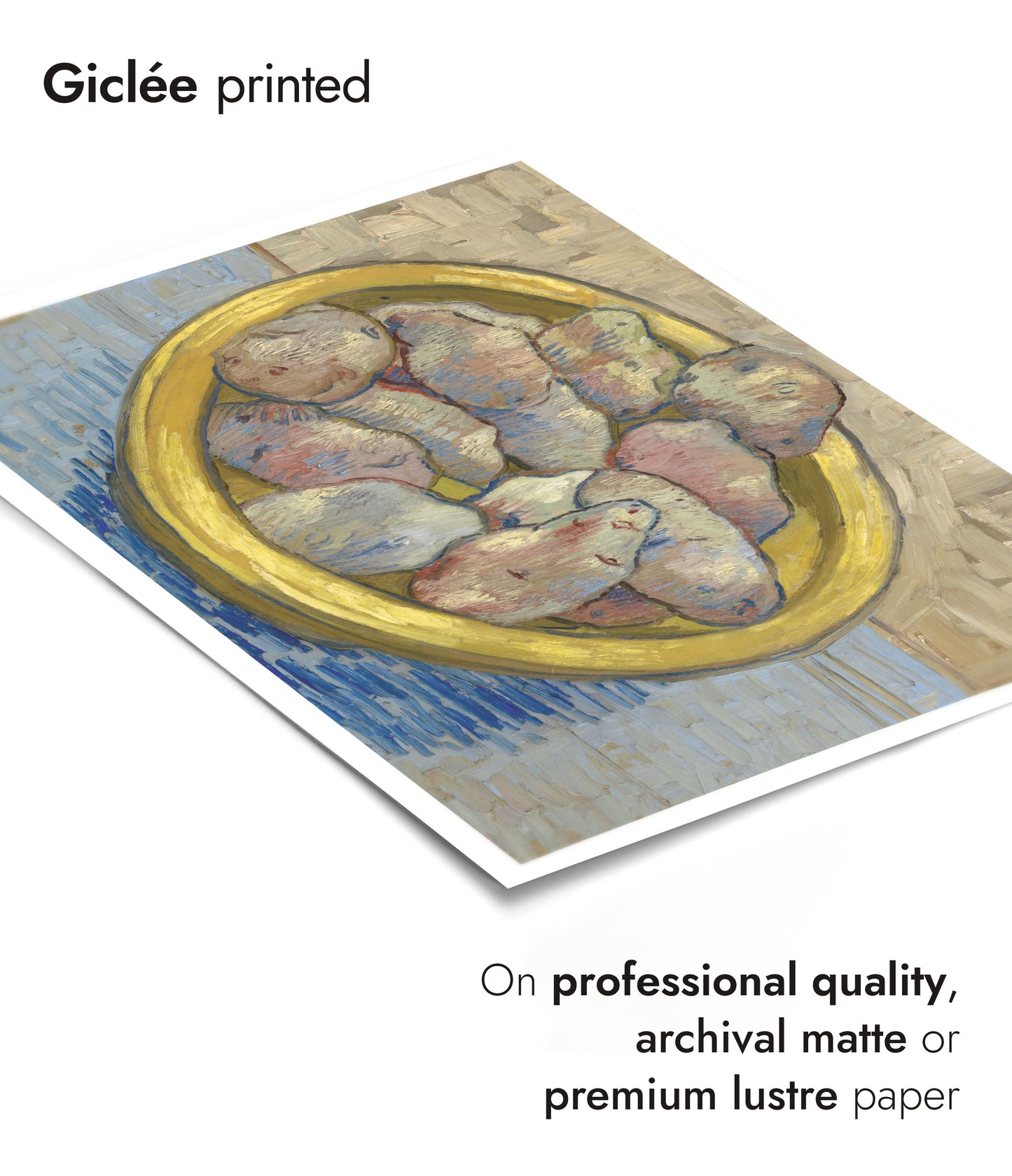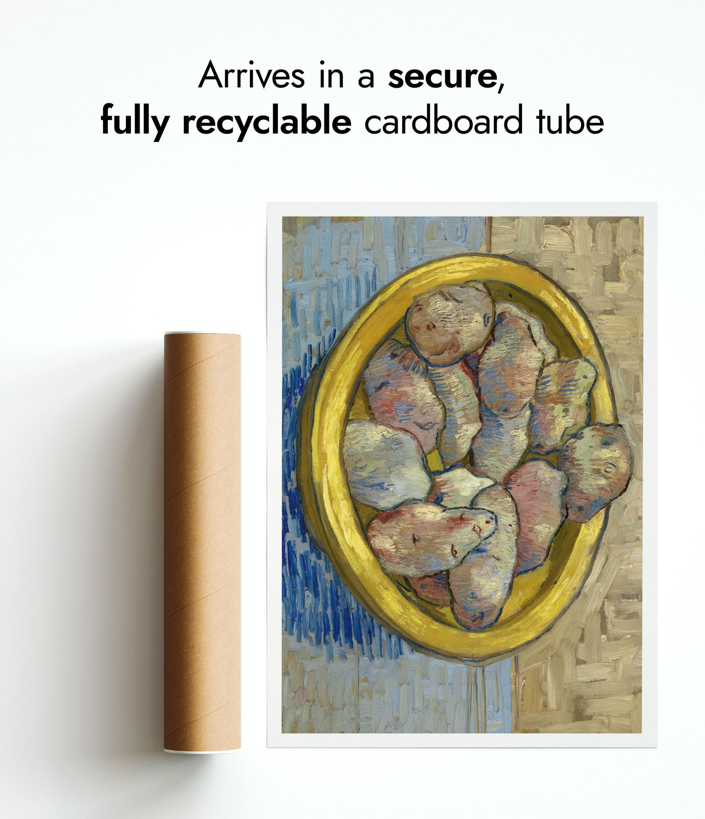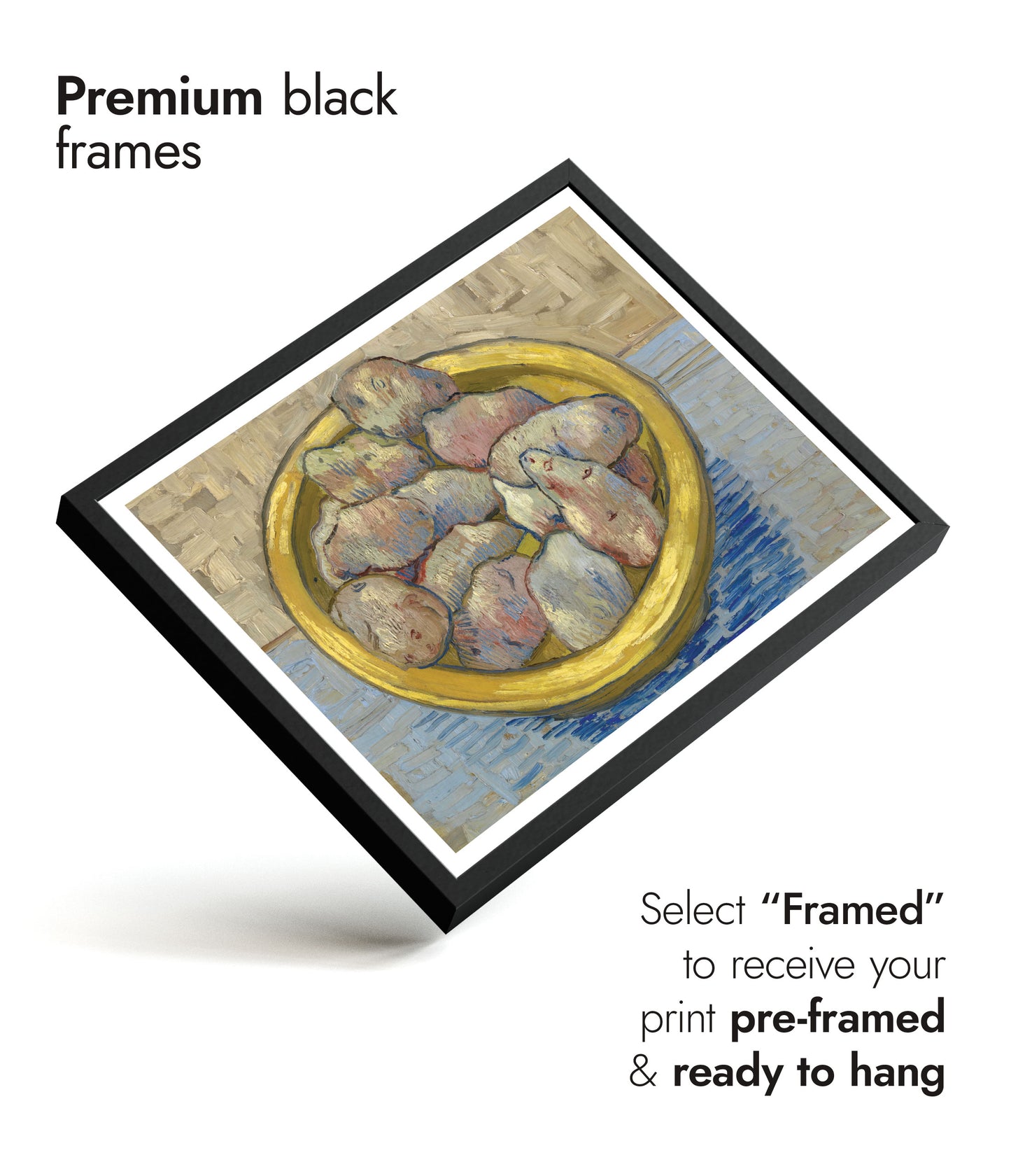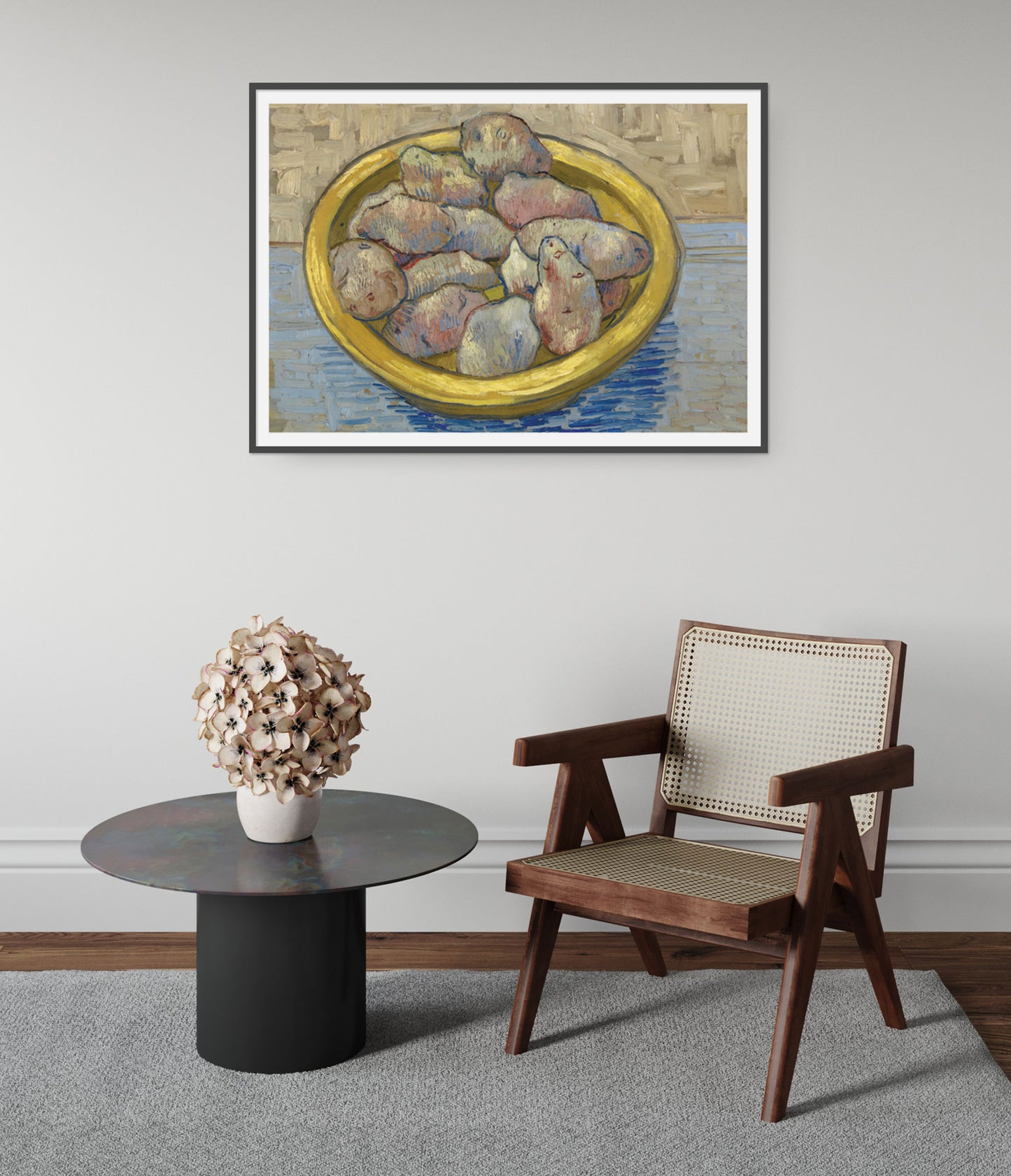 Vincent Van Gogh's "Still Life with Potatoes" poster showcases a rustic bowl brimming with earthy potatoes, set against a textured background. Rendered in Van Gogh's iconic Post-Impressionist style, this artwork vividly captures the simplicity and raw beauty of everyday objects. Perfect for adding a touch of classic artistry to any space.