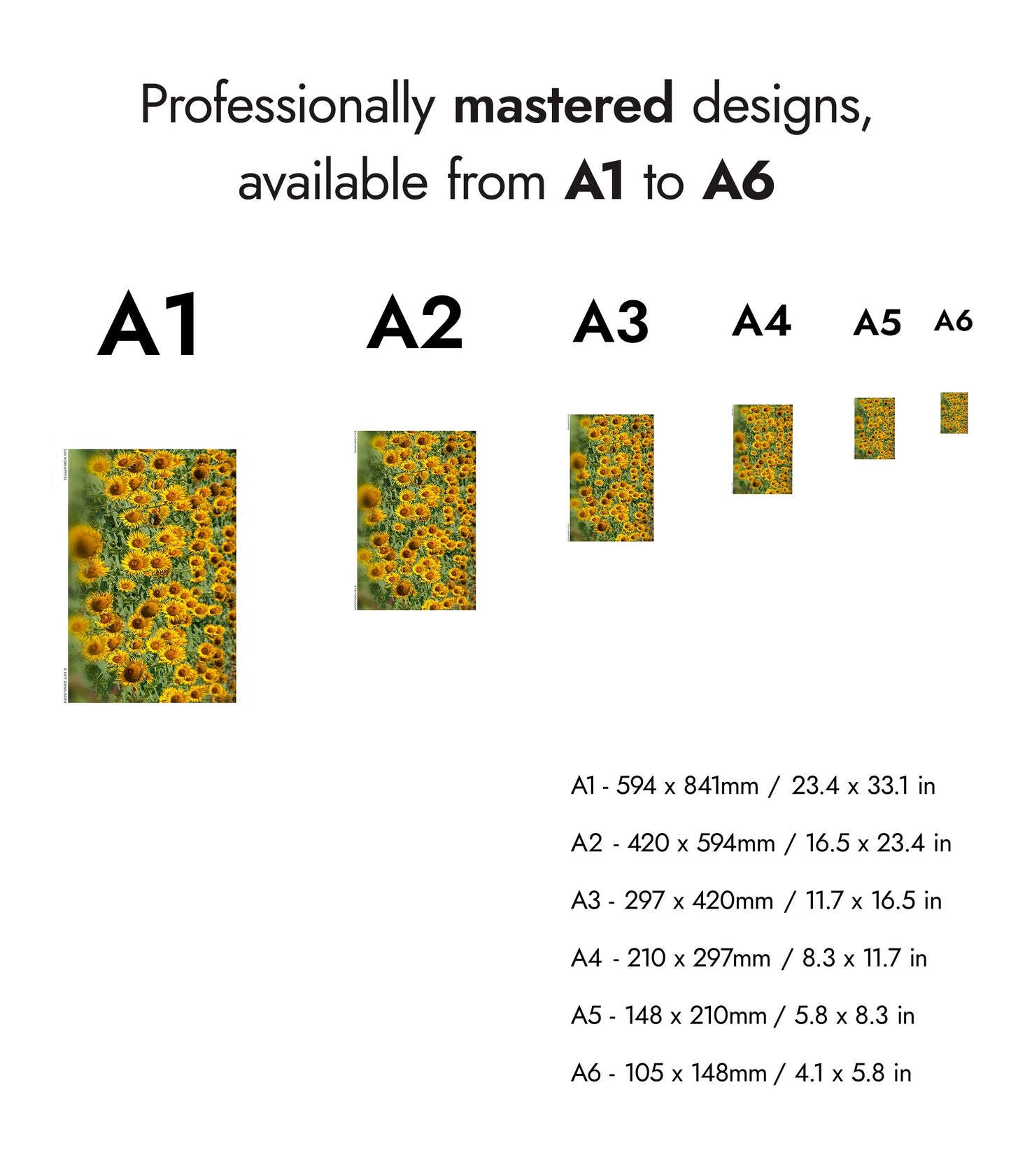 8 colour giclée print process on high-quality 230gsm archival matte paper. All our paper is FSC Certified and prints come with a lifetime fade-resistance guarantee.