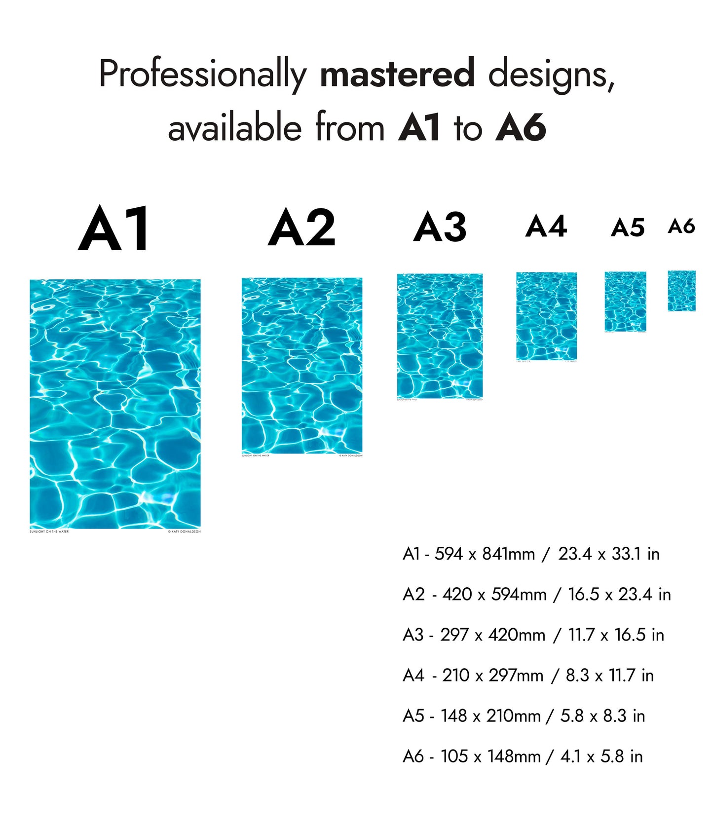 8 colour giclée print process on high-quality 230gsm archival matte paper. All our paper is FSC Certified and prints come with a lifetime fade-resistance guarantee.