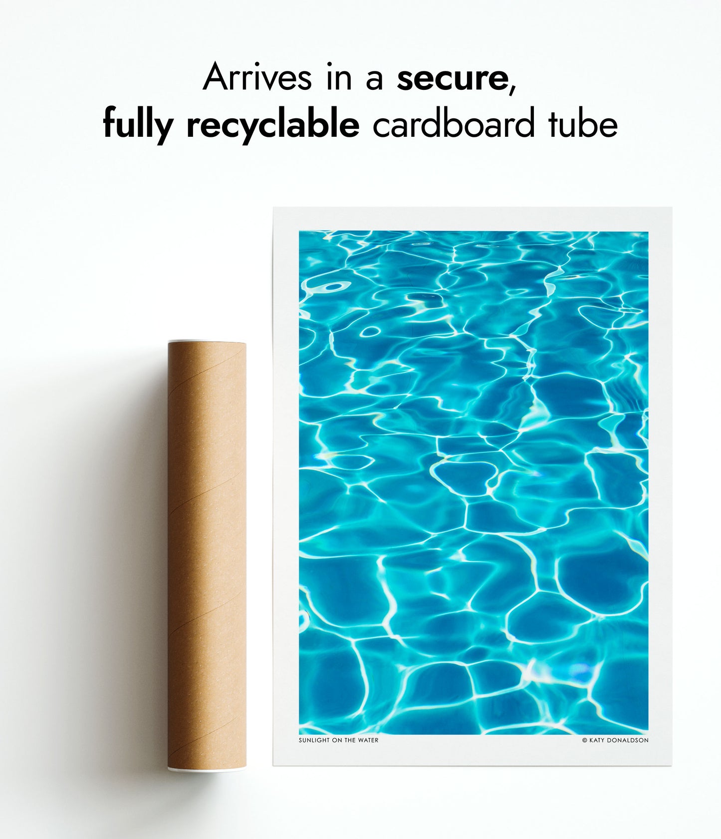 All orders are securely packed in recyclable, eco-friendly solutions. Frames are protected with sustainable bubble wrap alternatives inside thick boxes. Print only orders are shipped in heavy-duty cardboard tubes or protective hard-backed envelopes.