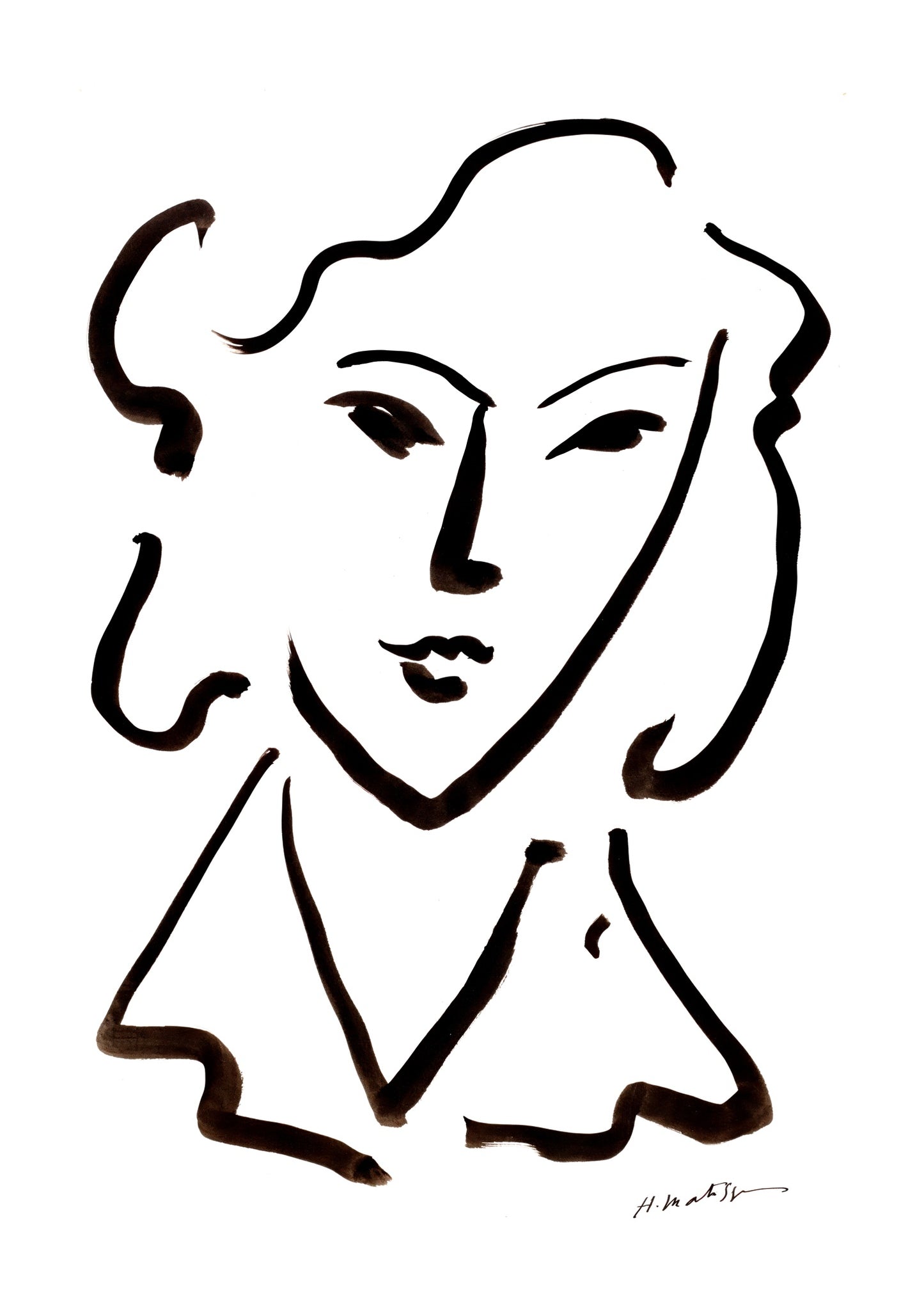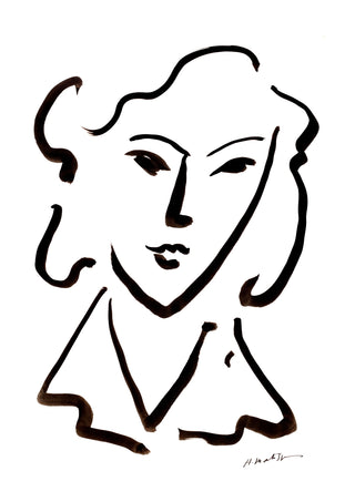 Henri Matisse's "Tete de Femme I" poster captures a striking minimalistic portrait of a woman. Rendered in bold, fluid lines, this Fauvist-inspired artwork emphasizes simplicity and expressive contours. The minimalist design focusing on the woman's head is both timeless and modern, making it a compelling choice for art enthusiasts. Perfect for adding an elegant touch to any interior space.