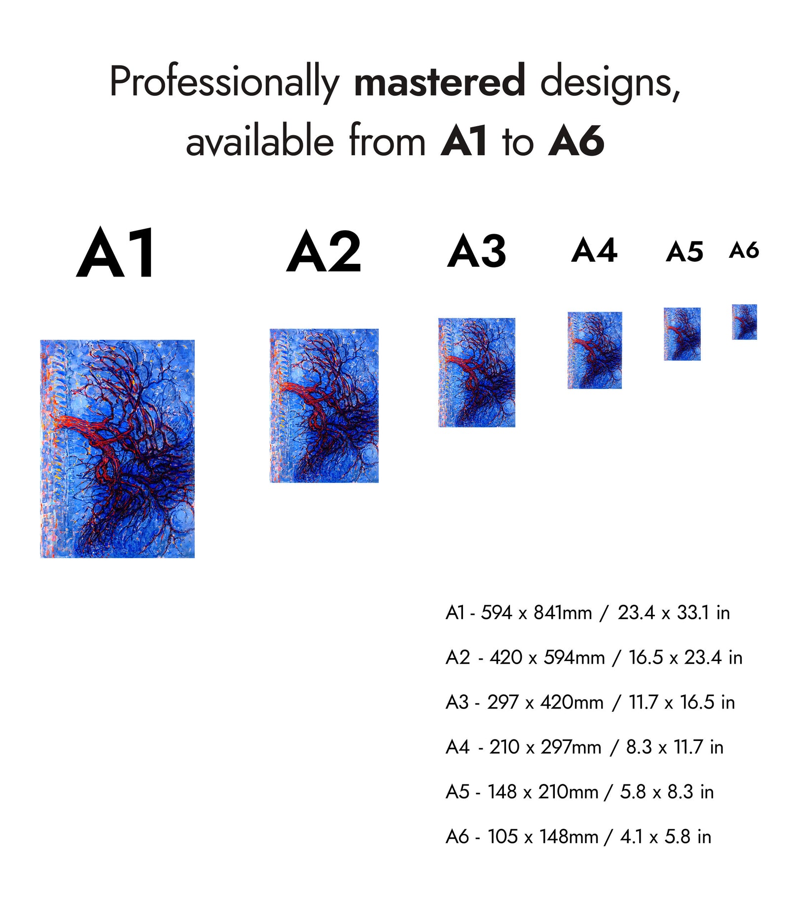8 colour giclée print process on high-quality 230gsm archival matte paper. All our paper is FSC Certified and prints come with a lifetime fade-resistance guarantee.